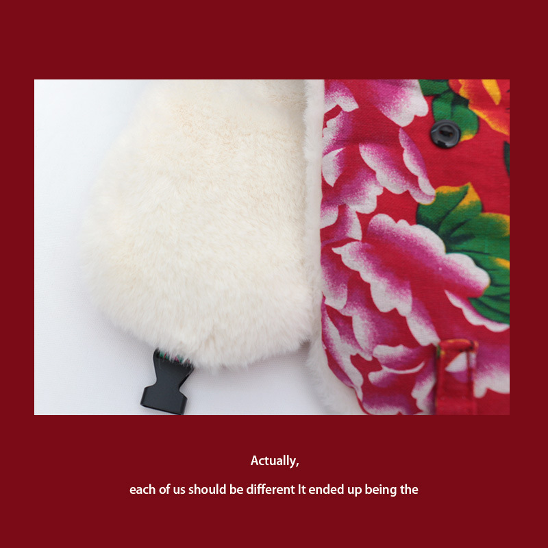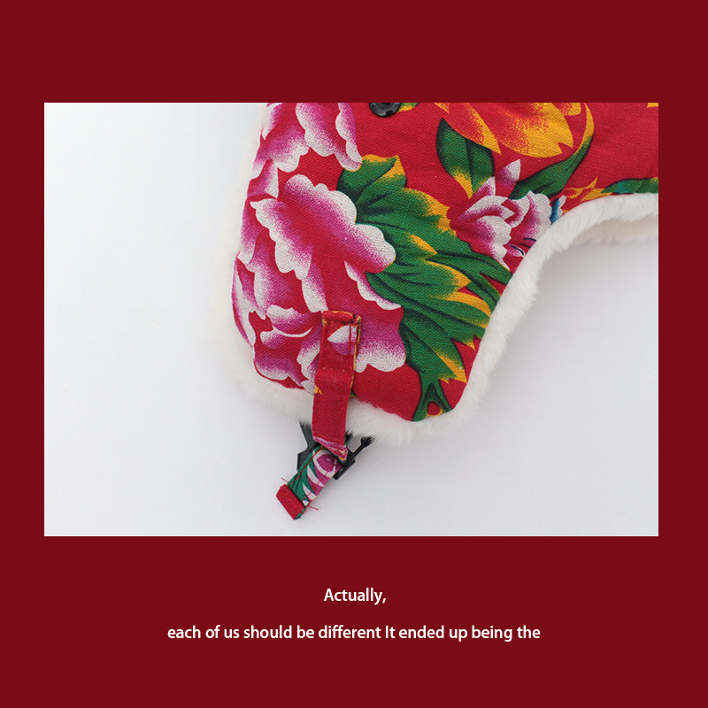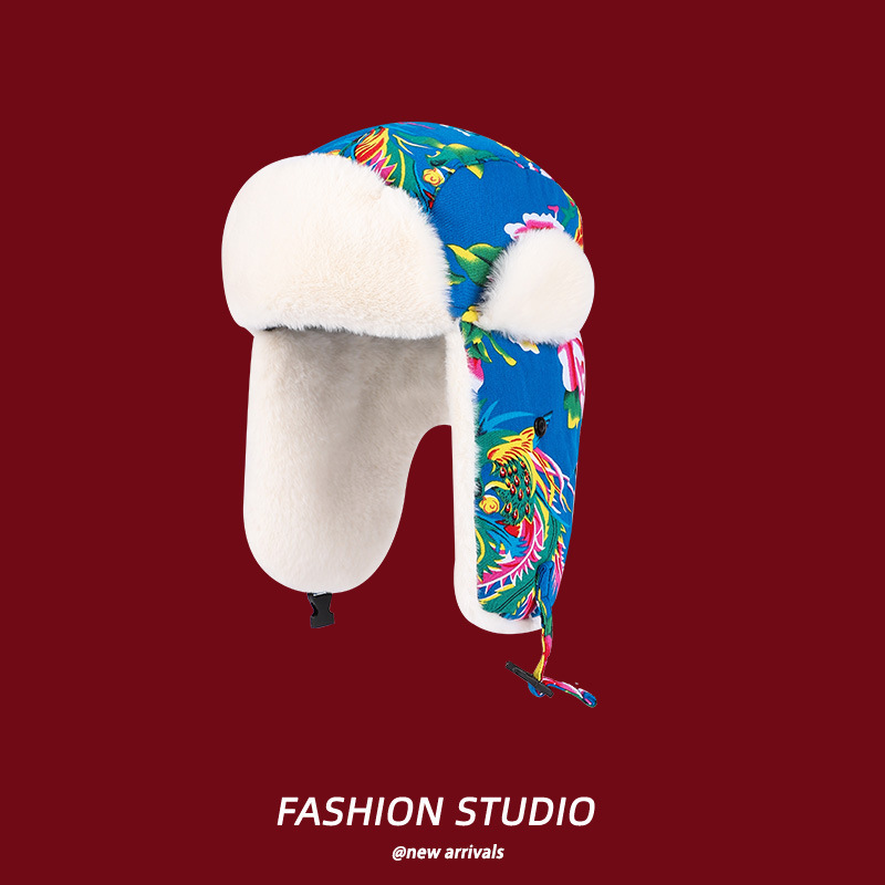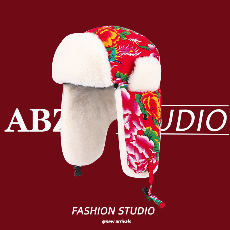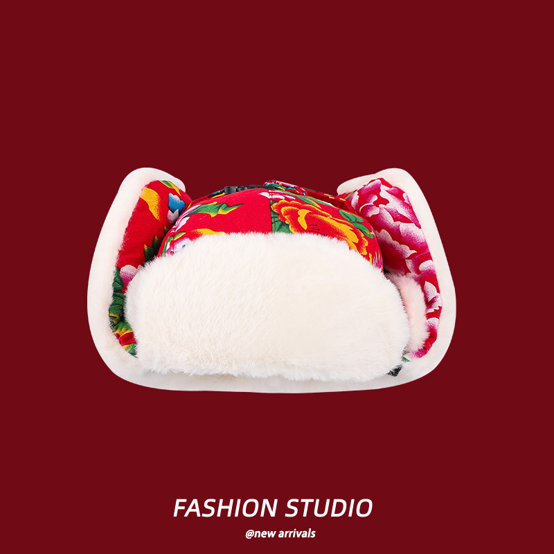 民族風東北大花布雷鋒帽女性は冬に防風耳保護キャップネット赤潮流スキー帽を厚くした