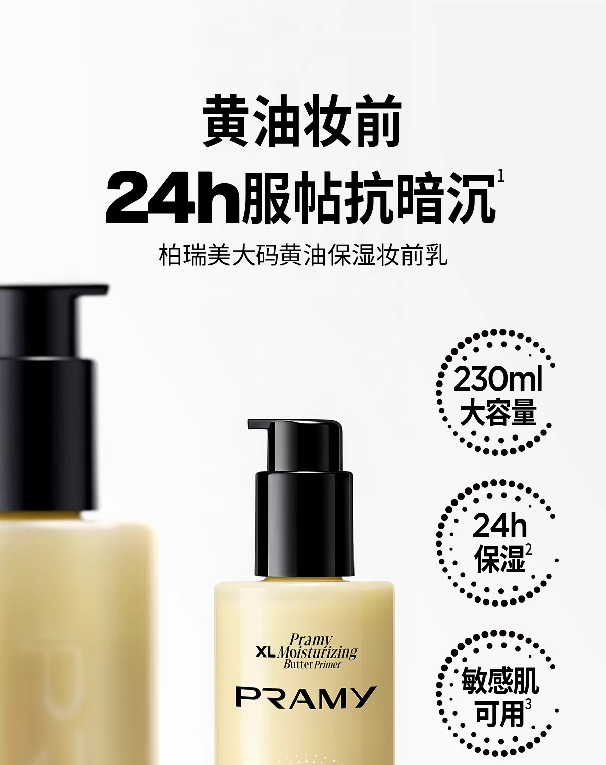 PRAMY/柏瑞美妆前乳大码黄油保湿舒缓24H服帖持妆抗暗沉