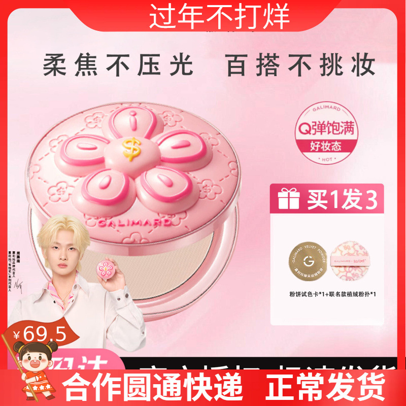 嘉利玛有钱花金币粉饼遮瑕版控油定妆蜜粉混干油皮遮瑕轻薄自然