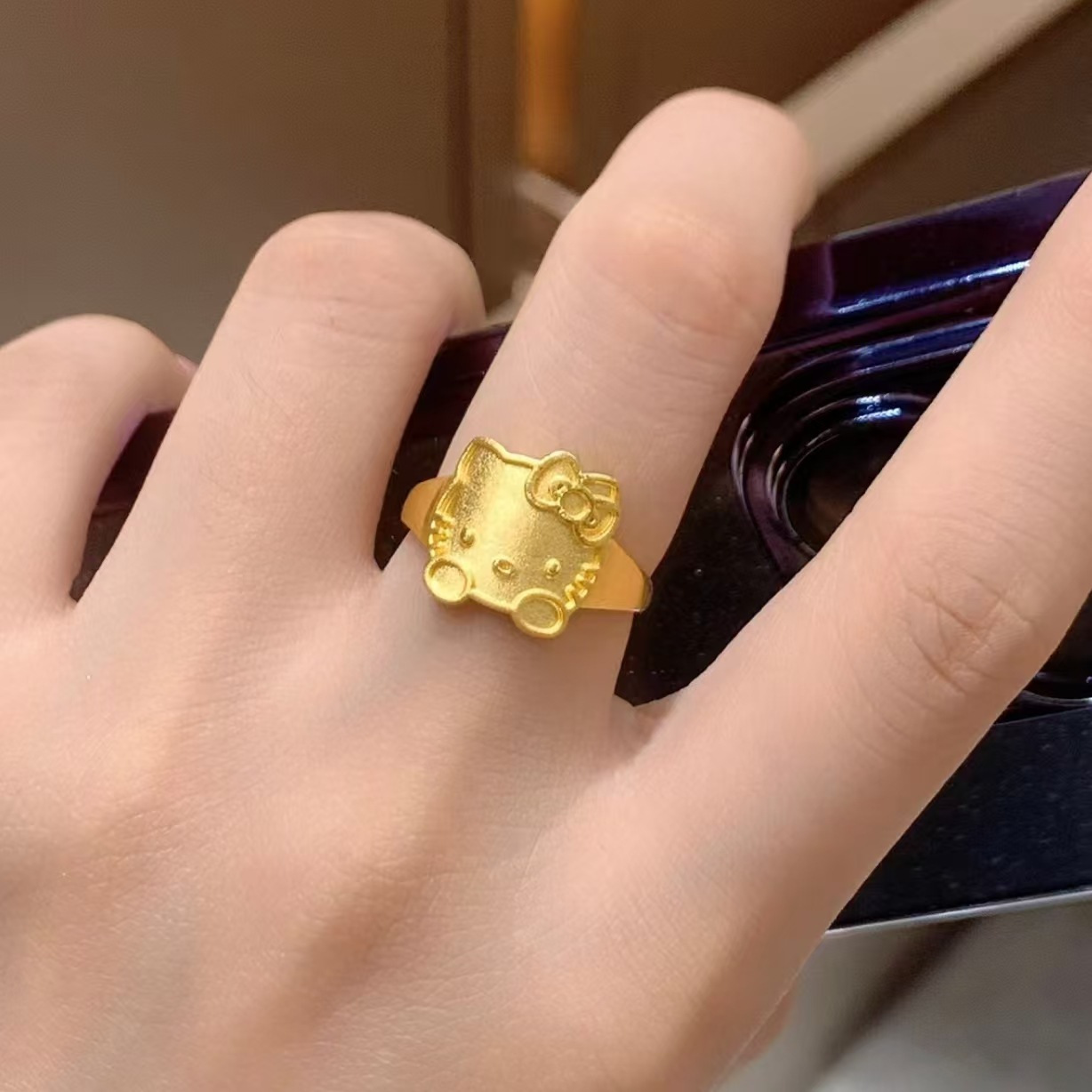 ケイティ猫の指輪の素の小さい衆の高い顔の値の精巧な百合kt猫の人差指の環ネットの赤い同項のかわいい風は口を開けて戒を開きます。