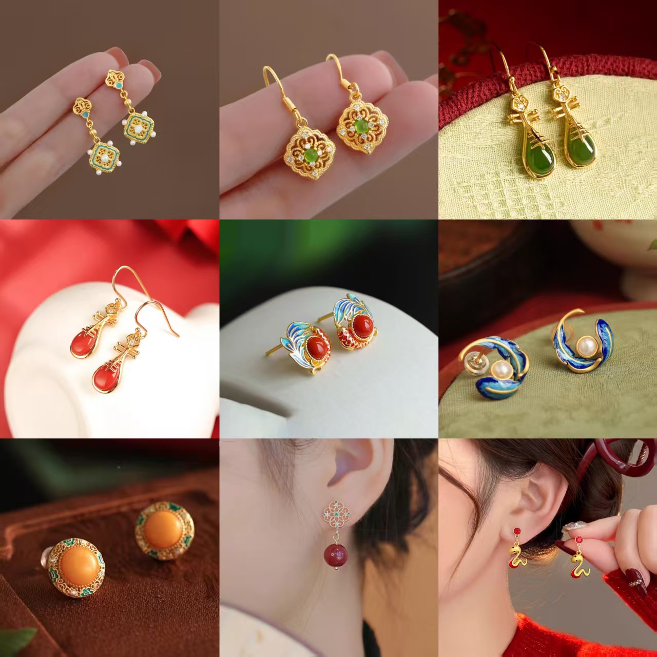 新中国式のレトロな国風のイヤリングの女性の軽豪華な高級感の気質のピアス2025の新型の爆発的な爆発の小さい大衆のイヤリングのアクセサリー