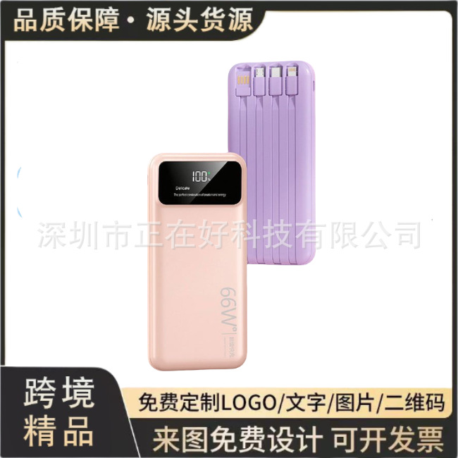 超薄型、ケーブル付きポータブル 20000 mAh 大容量パワーバンク 66W 急速充電 PD20W 超急速充電デジタルディスプレイ