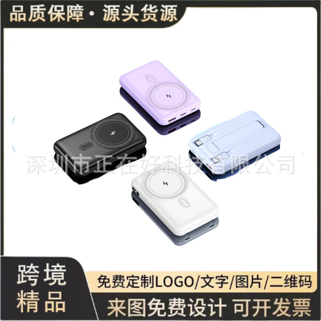 スポット磁気吸引充電宝10000ミリアンペア自己帯線スタンド無線急速充電屋外移動電源印刷ロゴ