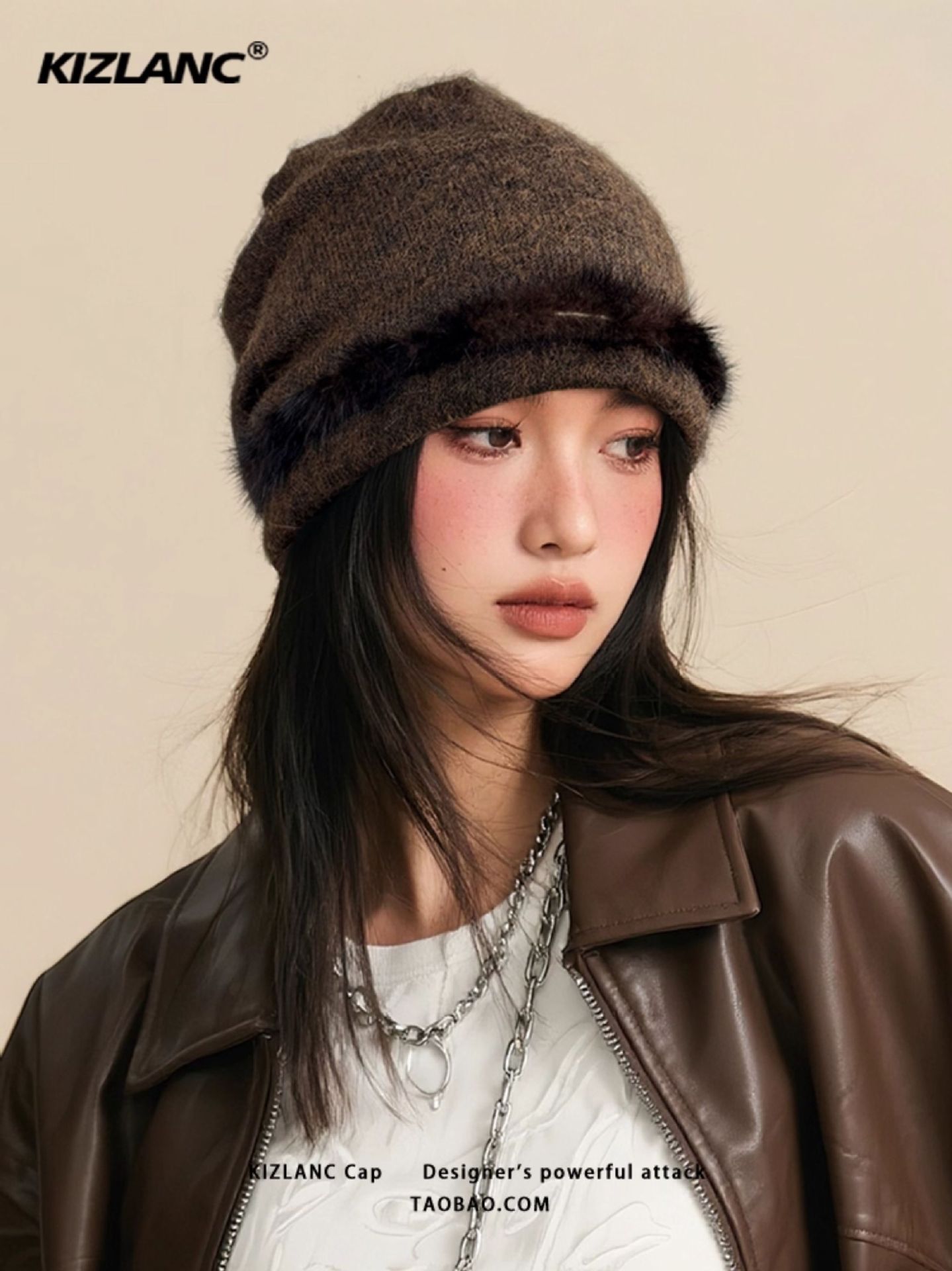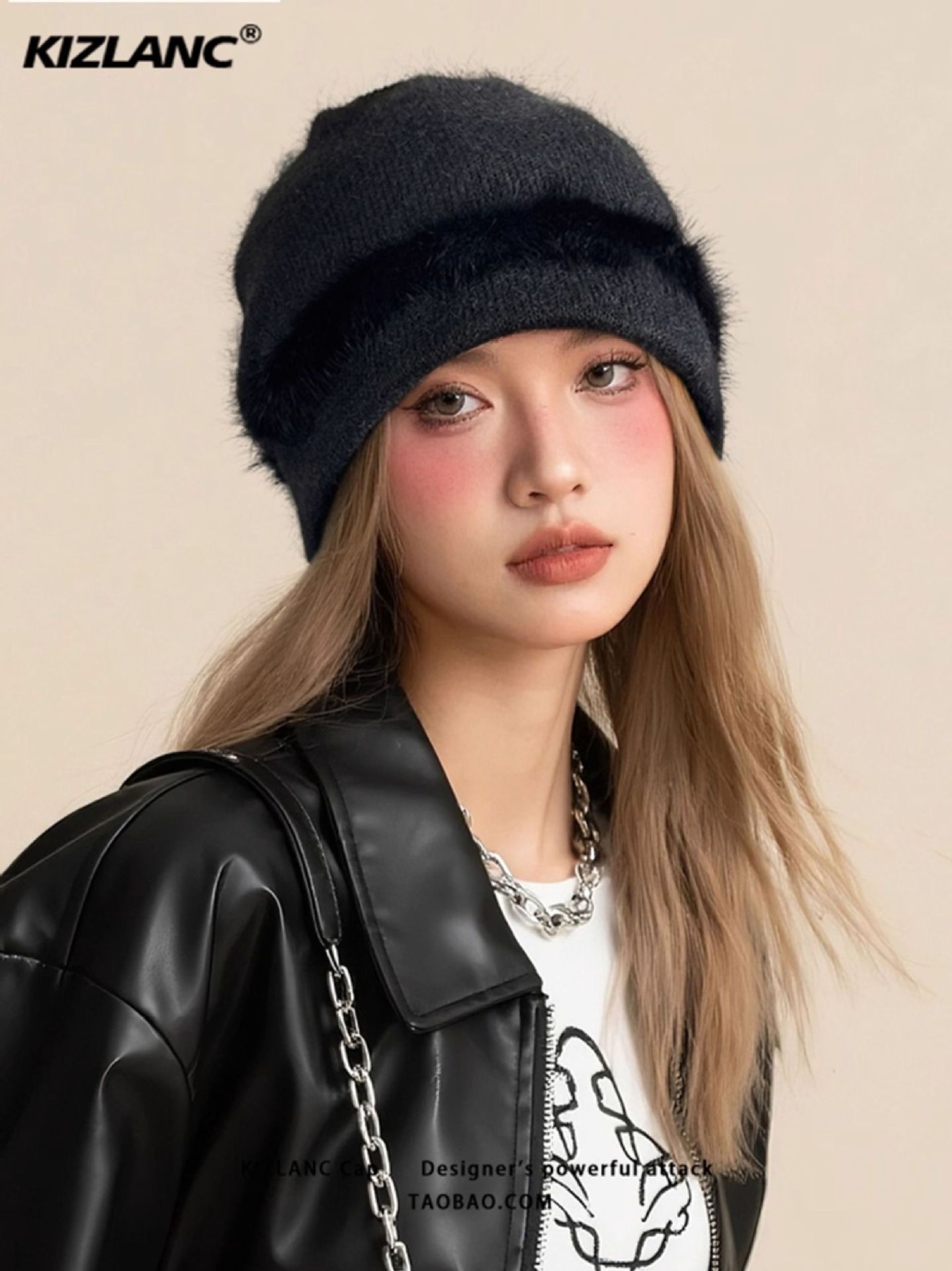 韩系堆堆帽子女秋冬新款显脸小大头围护耳保暖冷帽毛线帽包头帽