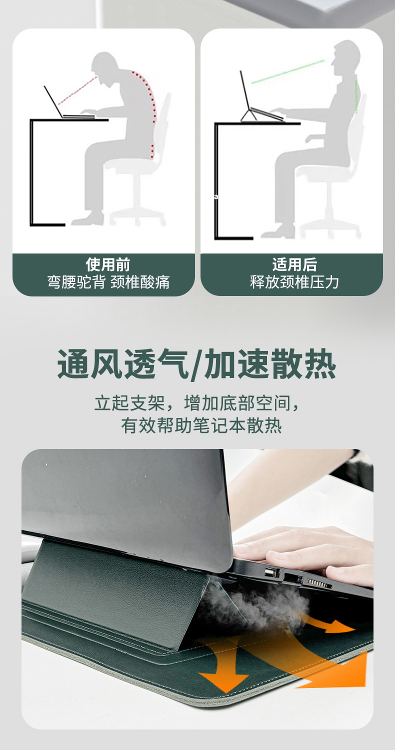 多機能スタンド放熱ノートパソコン内胆包三合一パソコンバッグ収納バッグ皮カバー適用macbook