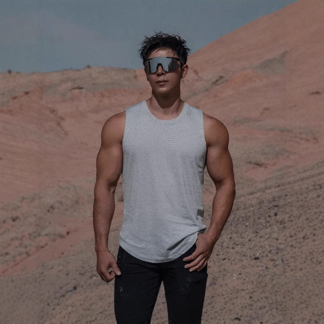 夏のメンズスポーツランニングフィットネストレーニング無地伸縮性速乾裾なしノースリーブベストスポーツ速乾ベスト