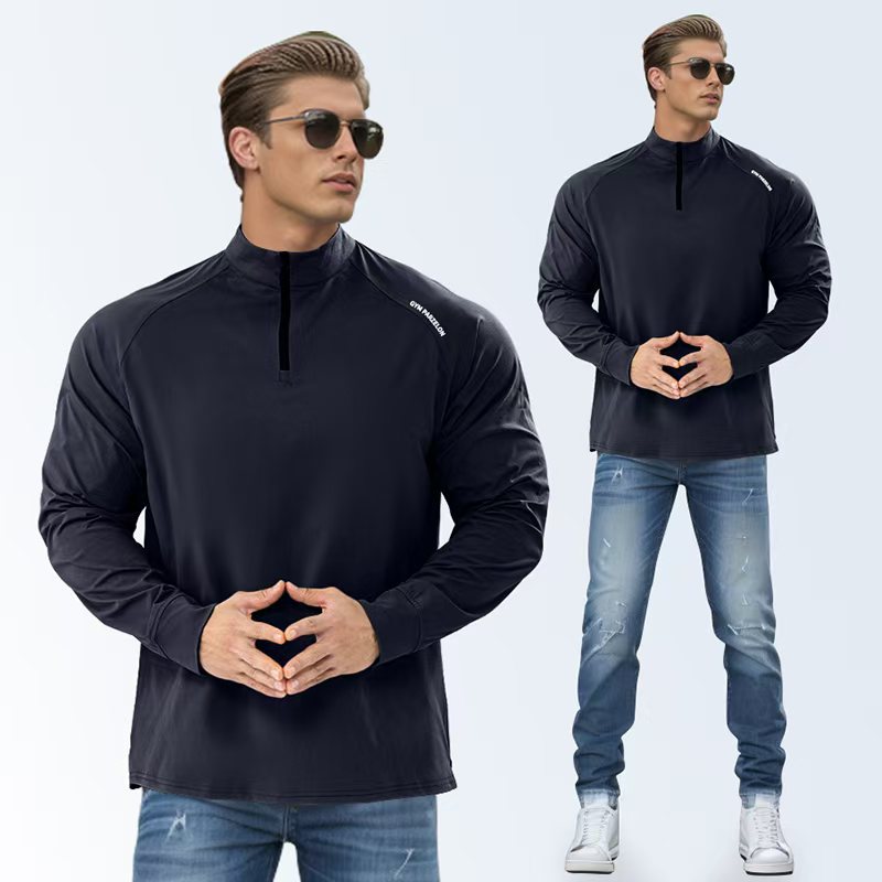 秋の新型ソフトシェルクローン綿半前襟/丸首修身カジュアルファッション顕型フィットネス高弾底長t