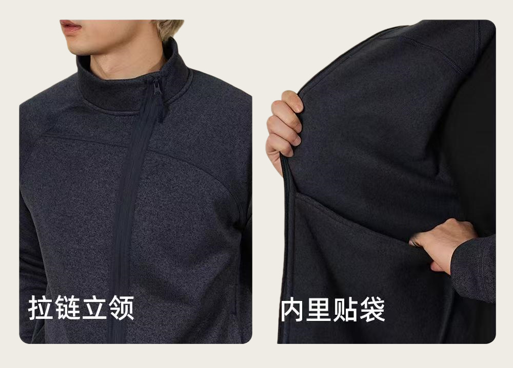 冬季保暖德绒锁温轻量拉链立领户外休闲抓绒衣健身训练跑步长袖