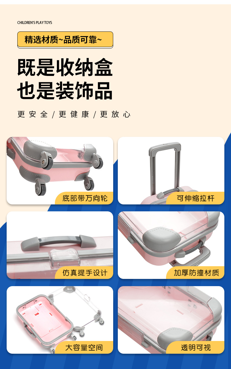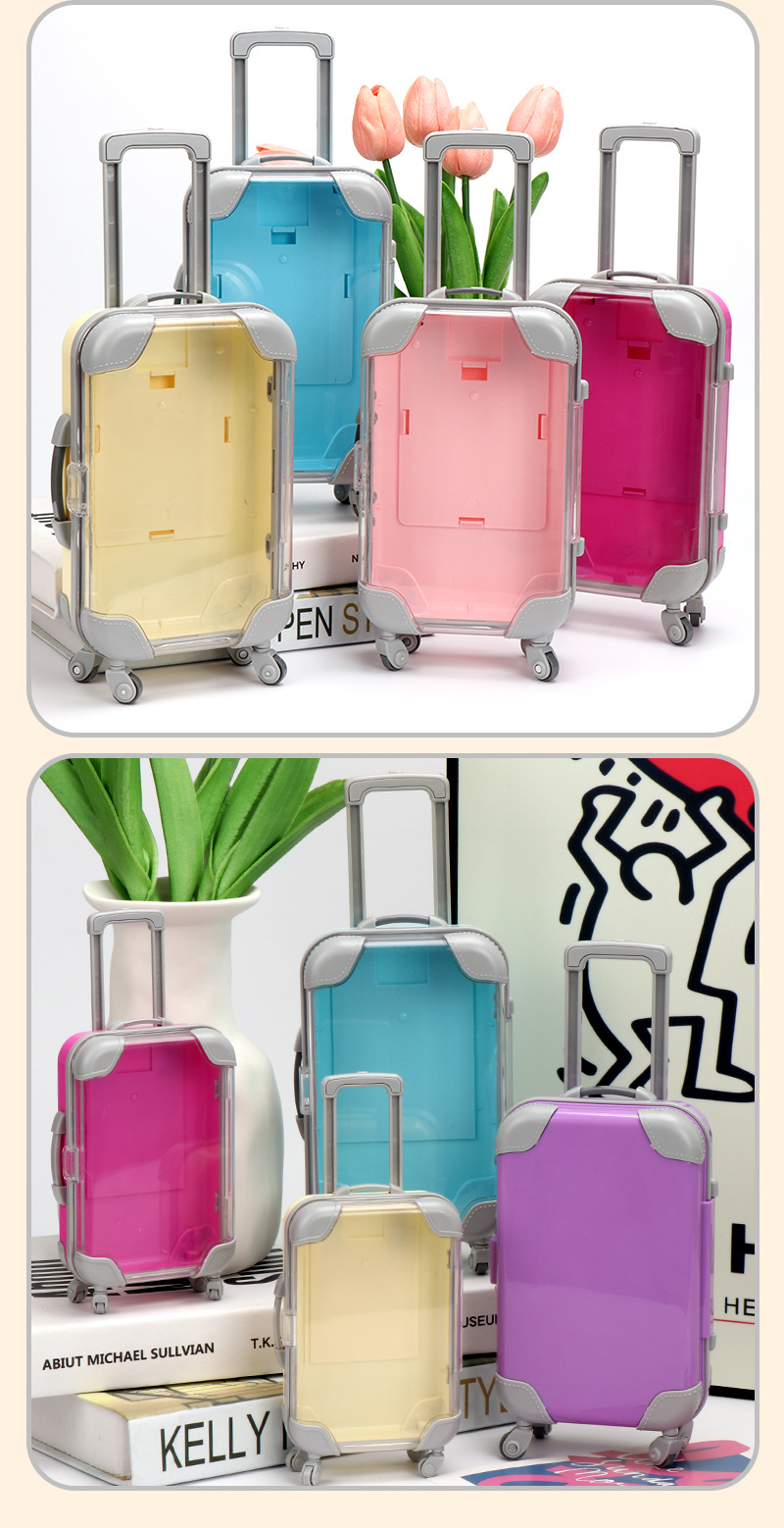 迷你透明拉杆箱 跨境化妆品假睫毛收纳仿真微缩行李箱过家家玩具