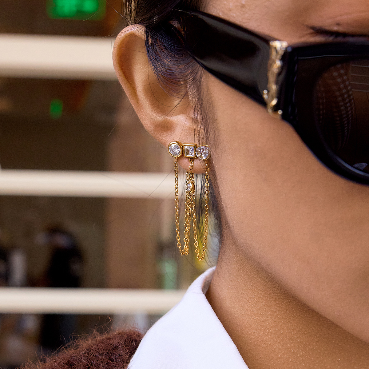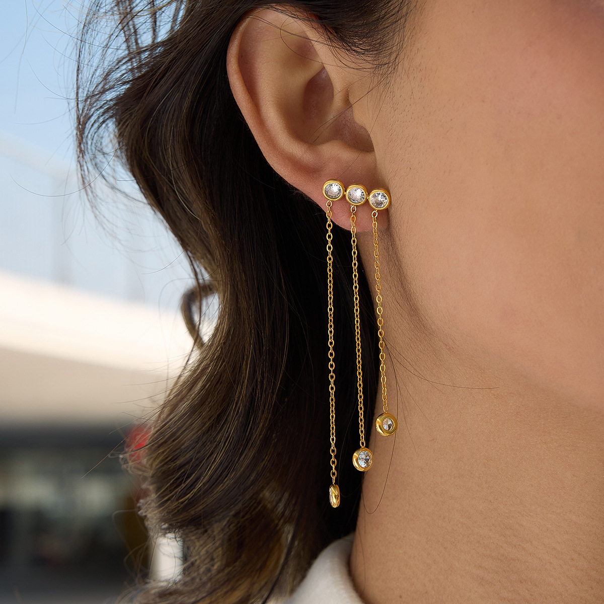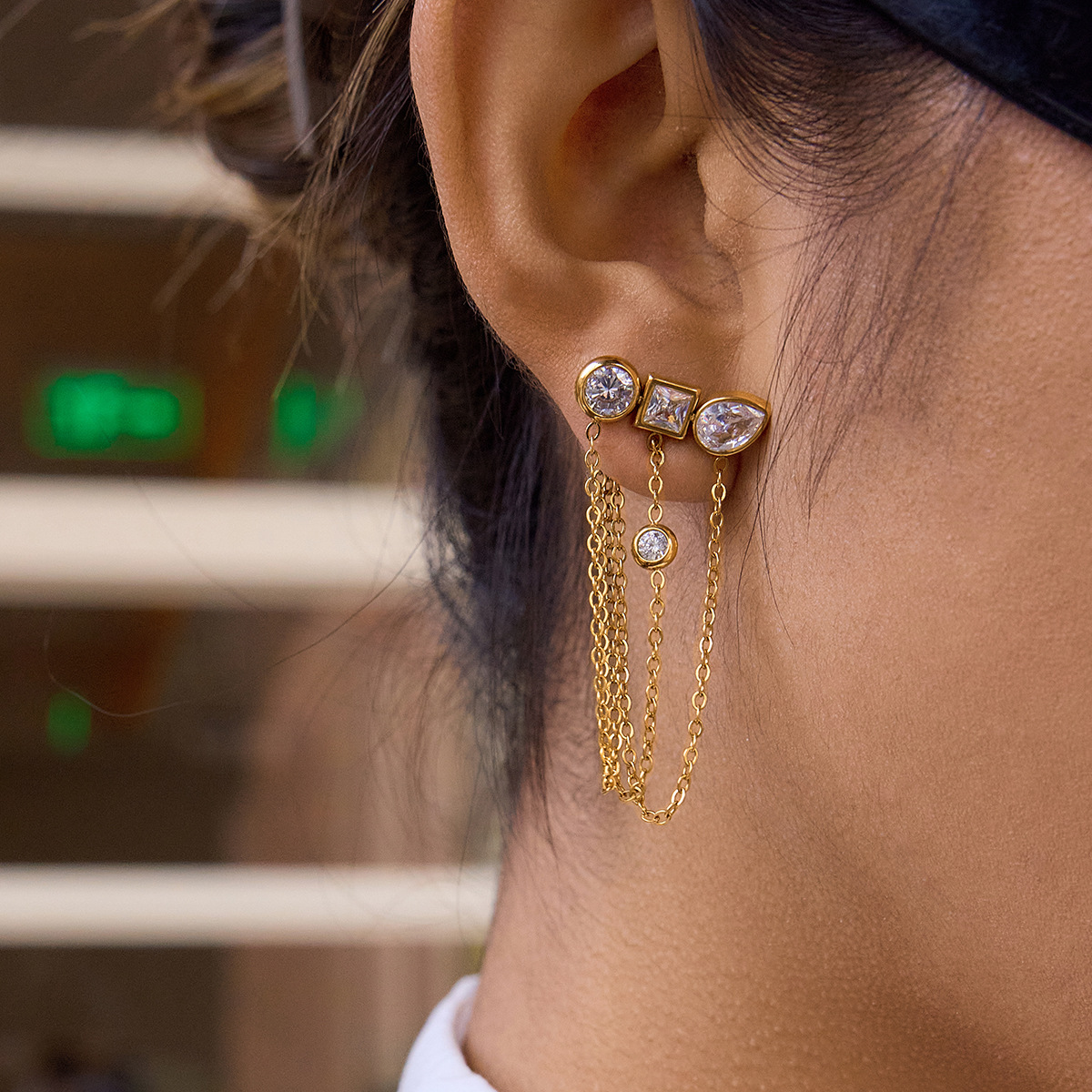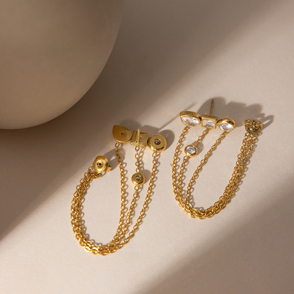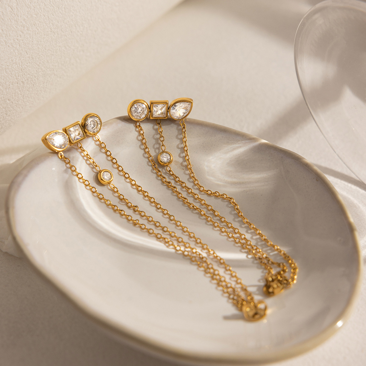 万兴欧美不锈钢18K水滴形锆石链条耳环线条感时尚精美耳饰饰品女
