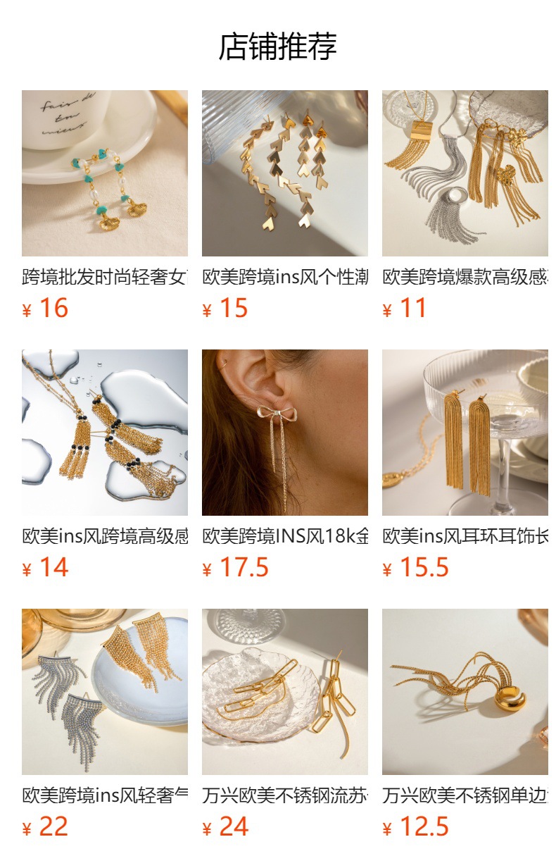 万兴亚马逊INS链条流苏不锈钢耳环简约时尚气质小众高级感耳饰女