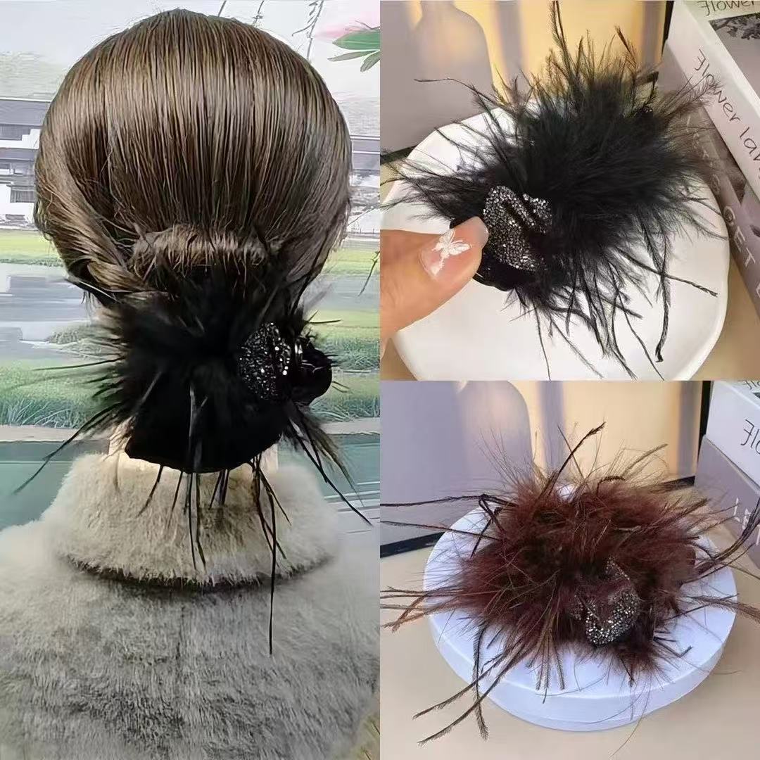 羽毛抓夹高级感不掉毛丸子头女新款后脑勺马尾发夹神器鸵鸟毛头饰