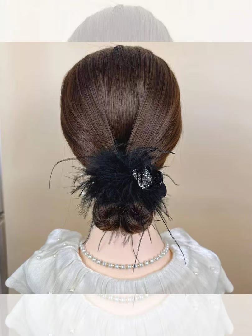 爆款!黑羽毛镶钻天鹅发夹,绒毛质感超仙顶夹高马尾后脑勺发夹