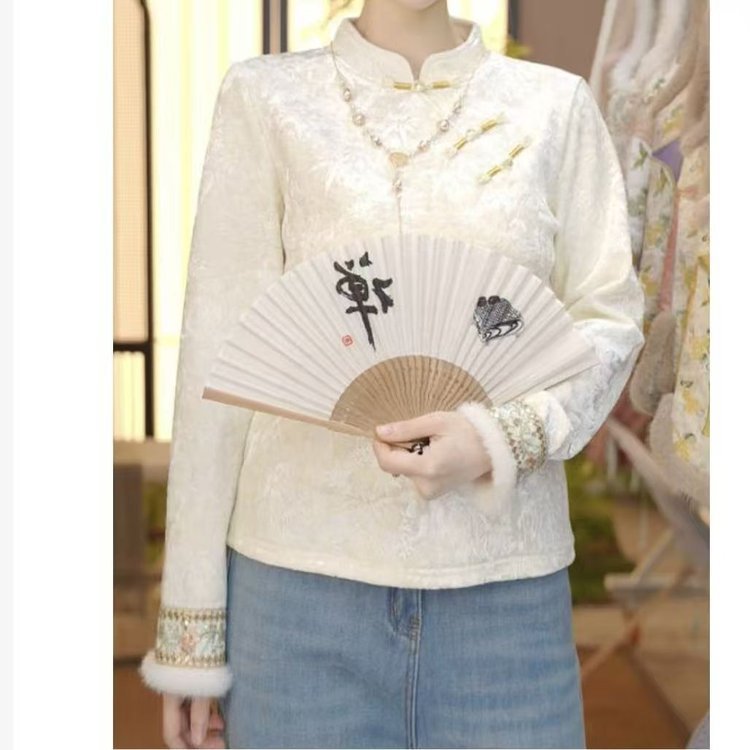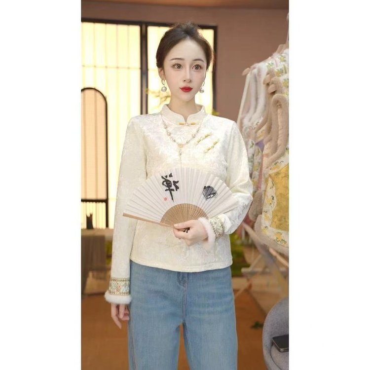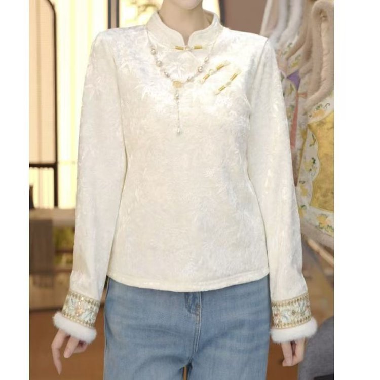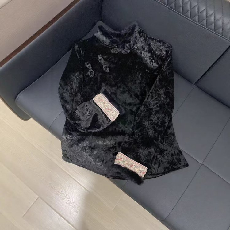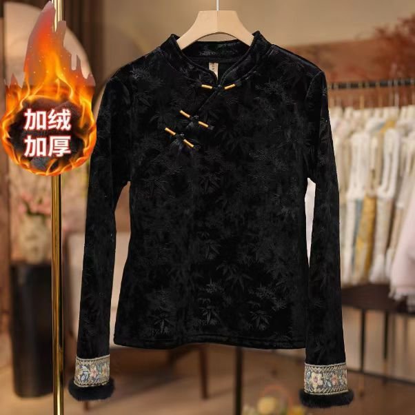 一件代发原版直播爆款冬季新款加绒国风打底衫百搭文艺复古上衣女