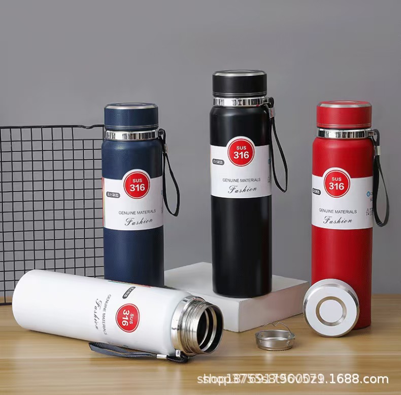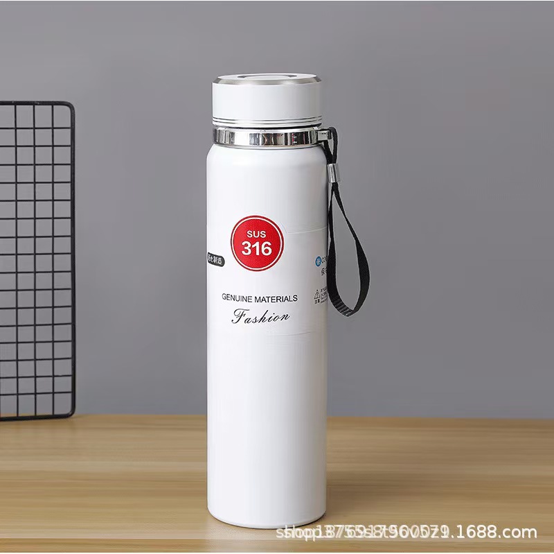 跨境不锈钢316保温杯商务大容量户外便携吊带运动太阳壶刻印logo