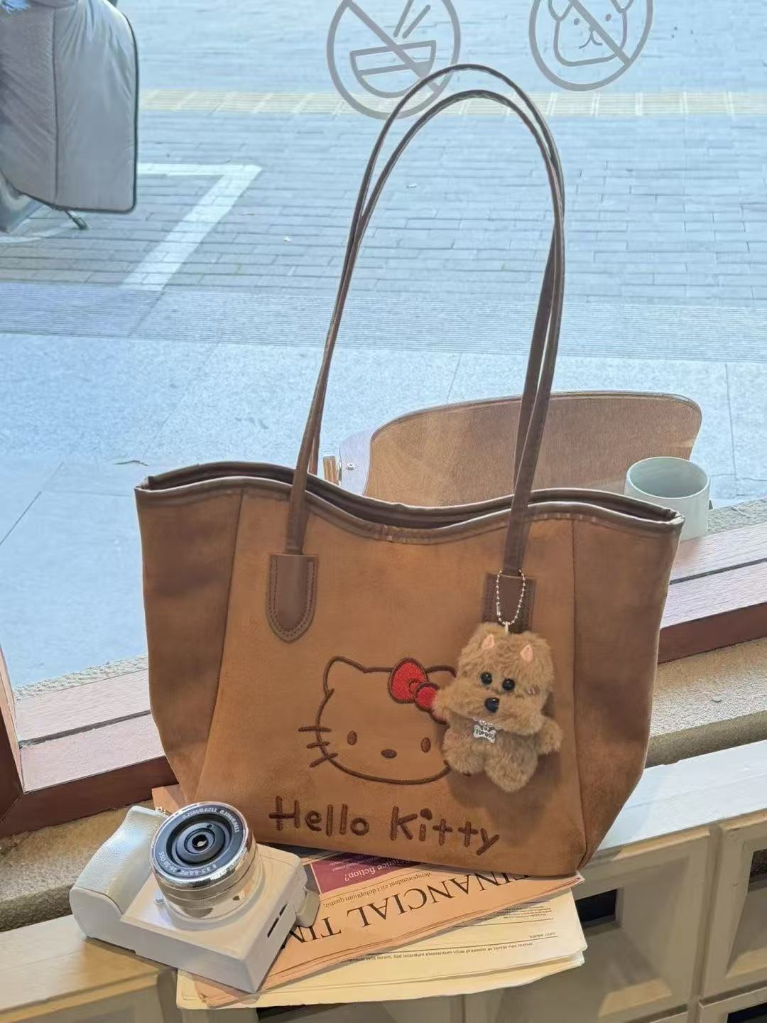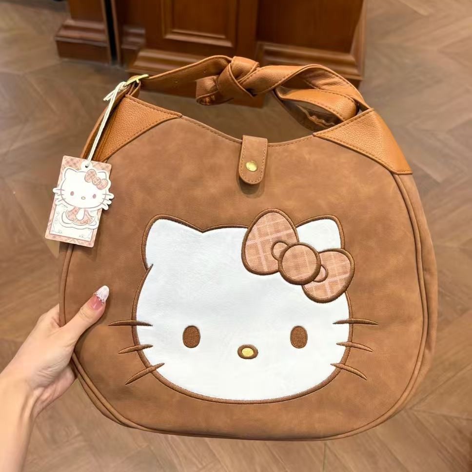 可爱凯蒂猫美拉德斜挎包高颜值大容量单肩包便携外出托特包休闲包