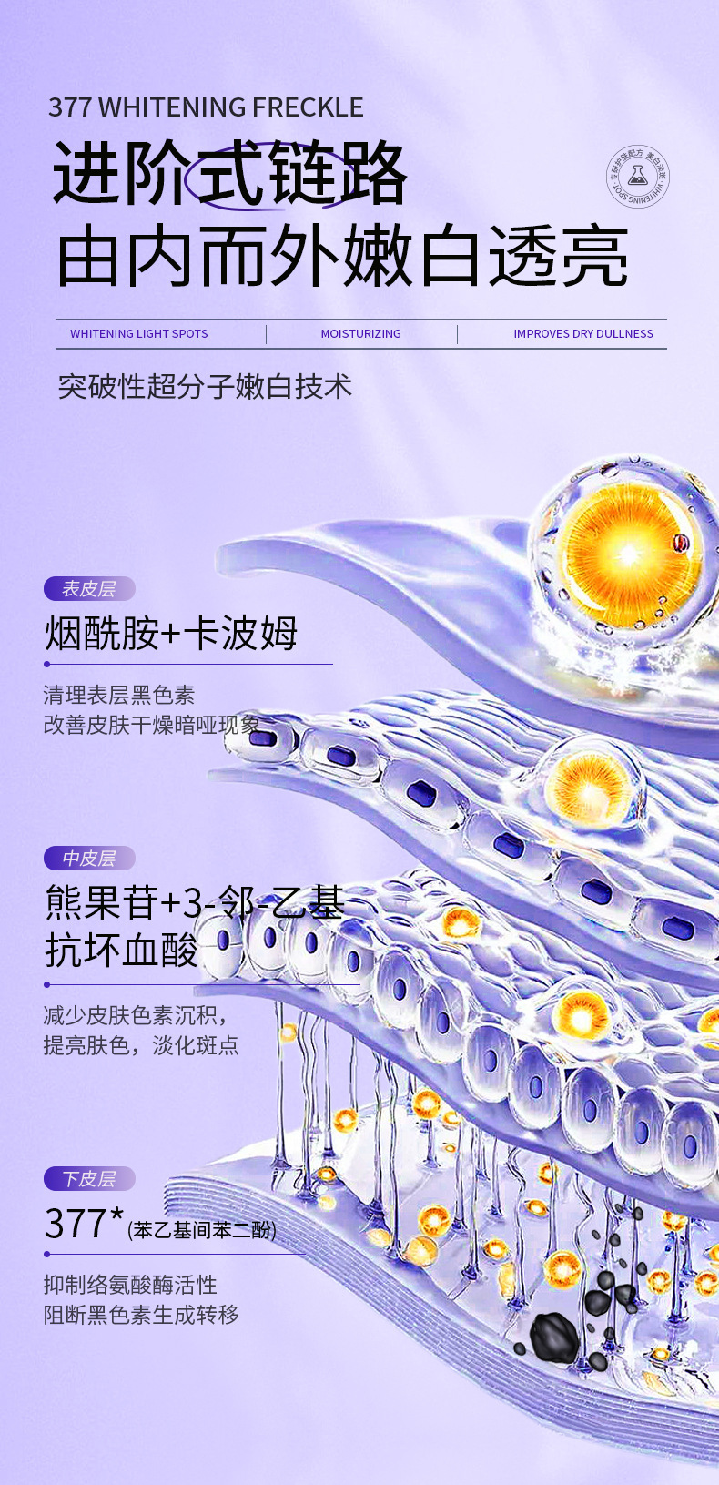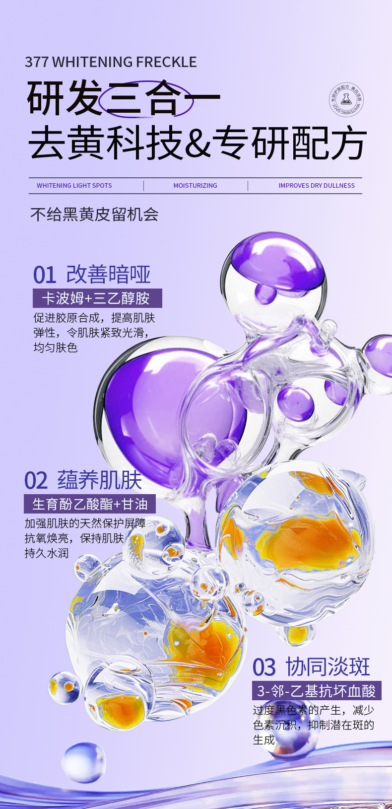 倩萃377美白淡斑精华液美白去黄提亮淡化痘印抑制黑色素抗氧化