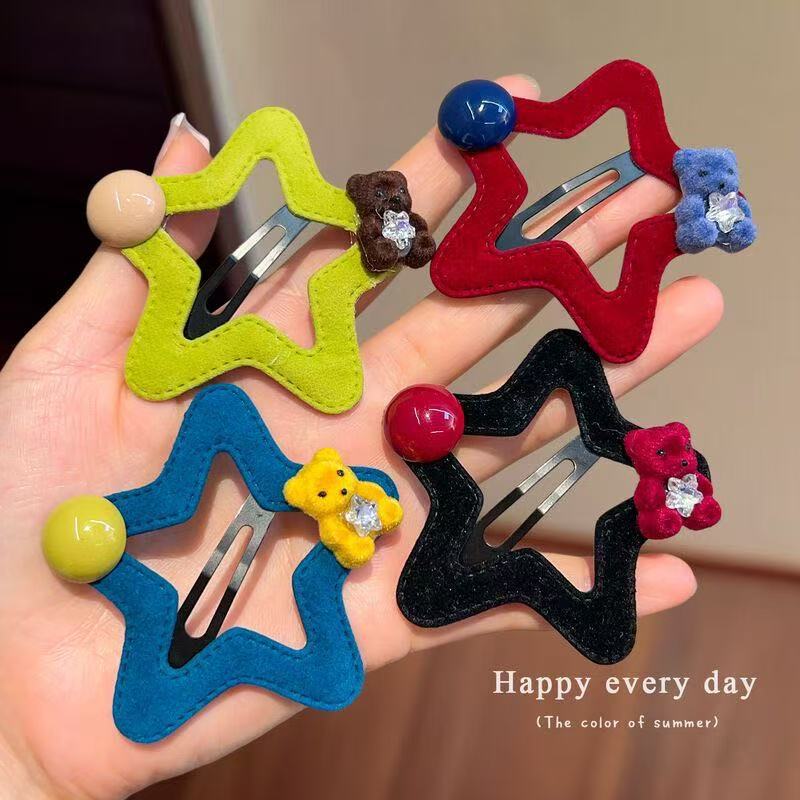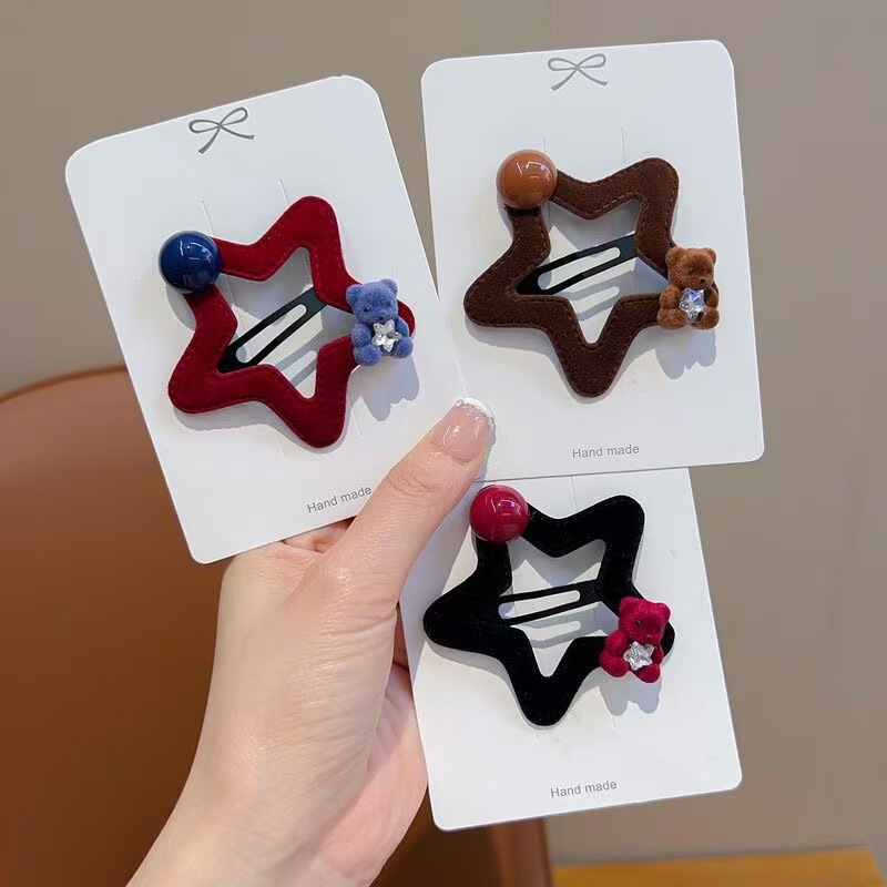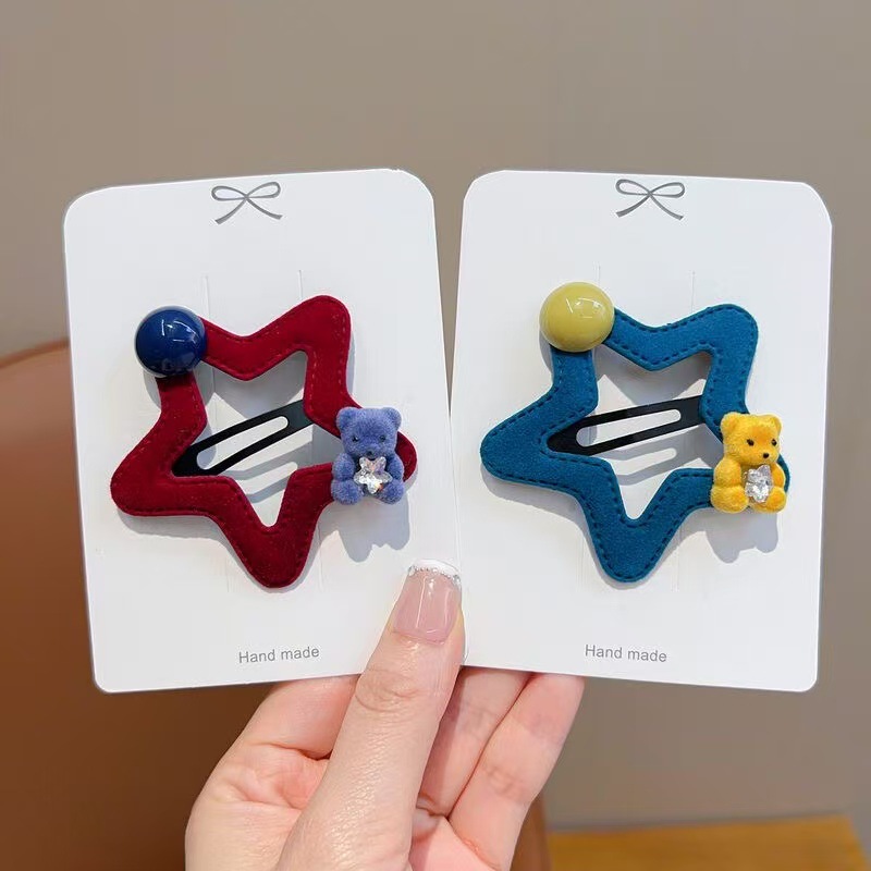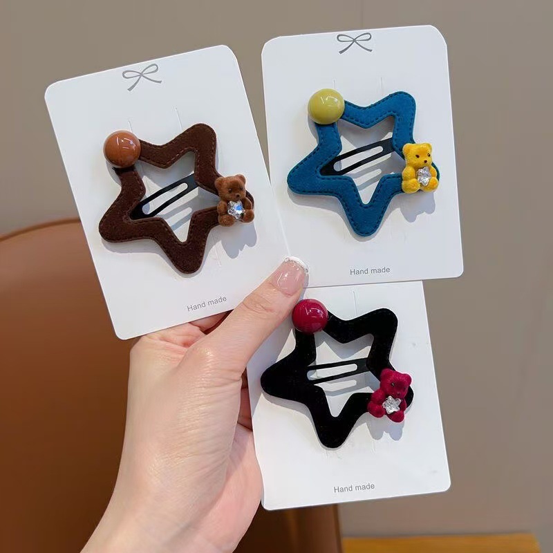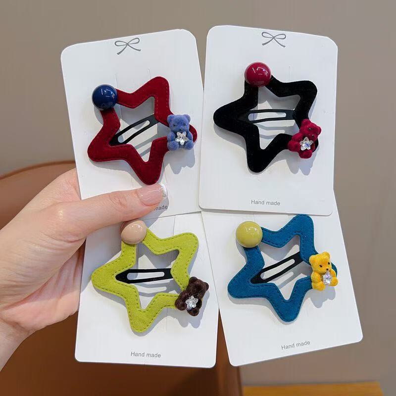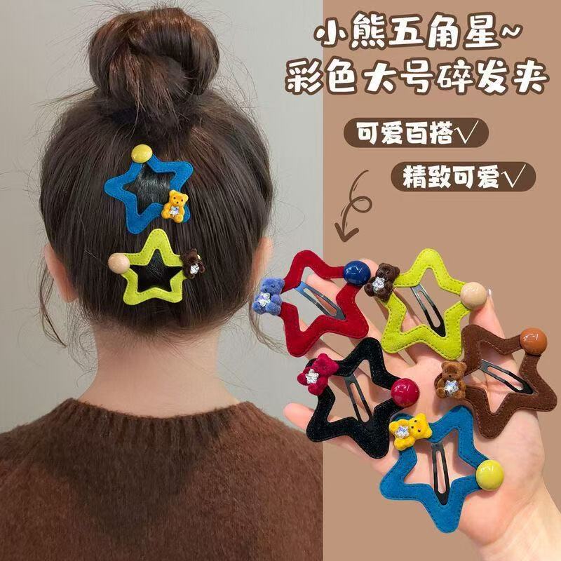 星星小熊碎发夹女童可爱五角星边夹秋冬新款毛绒发卡发饰头饰