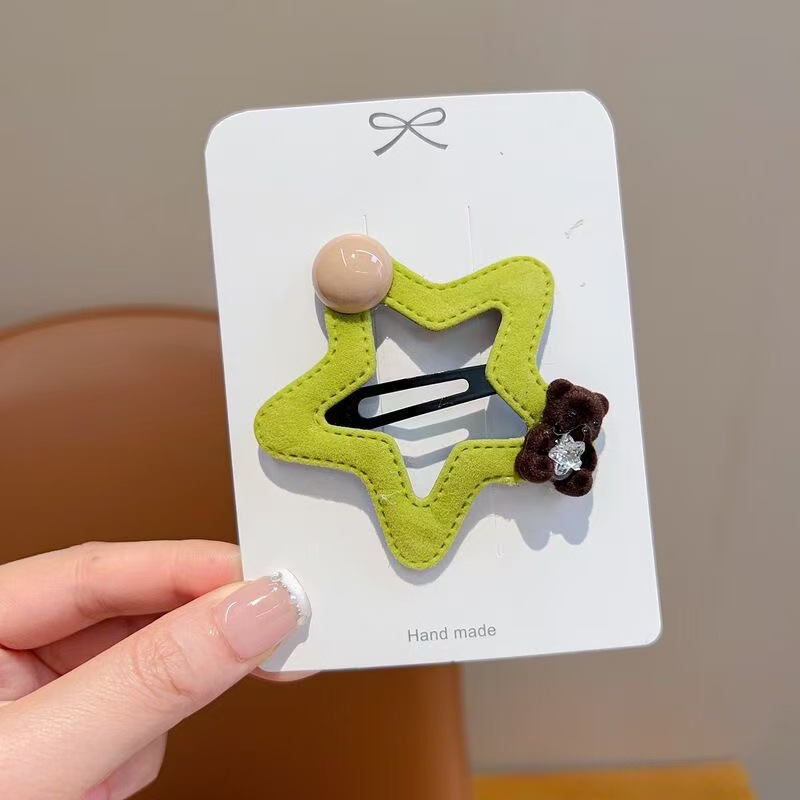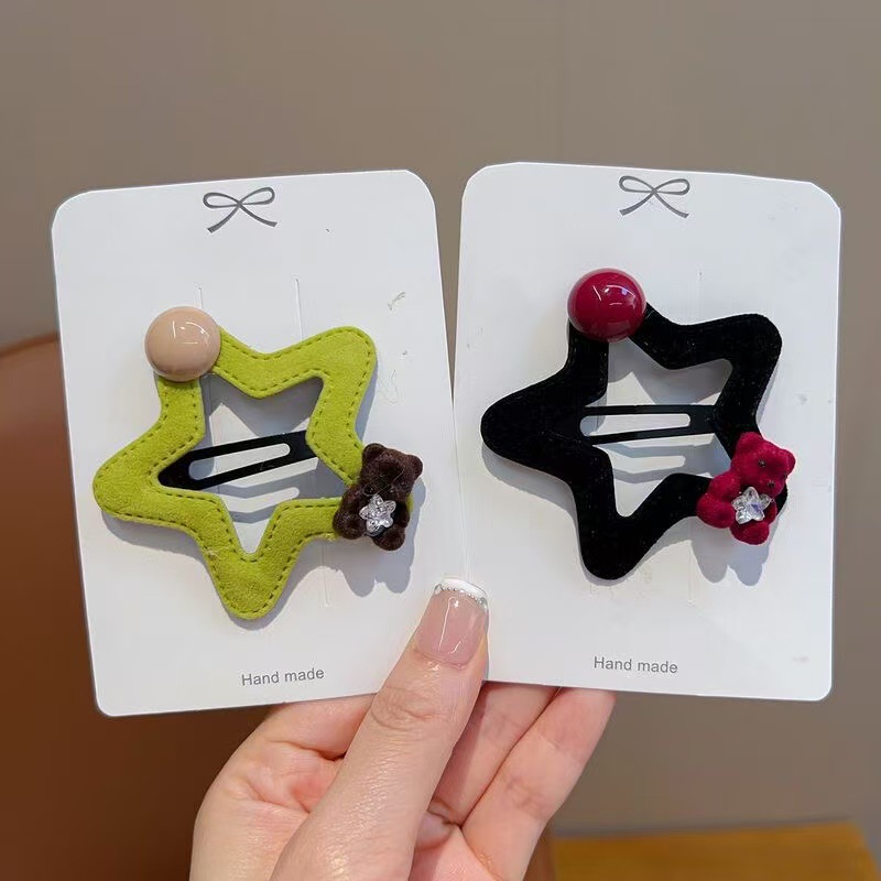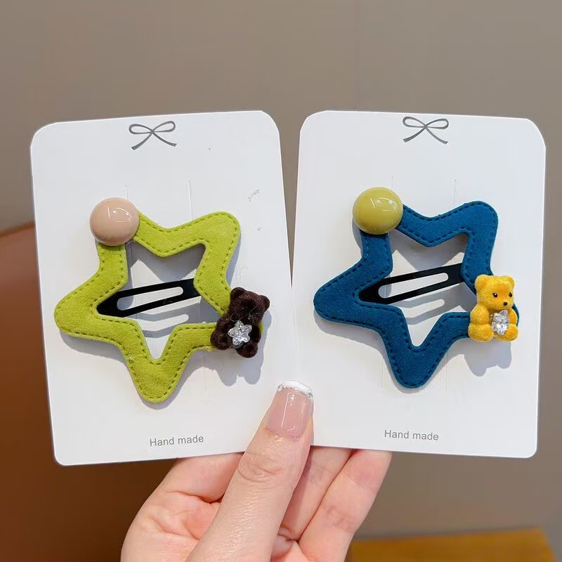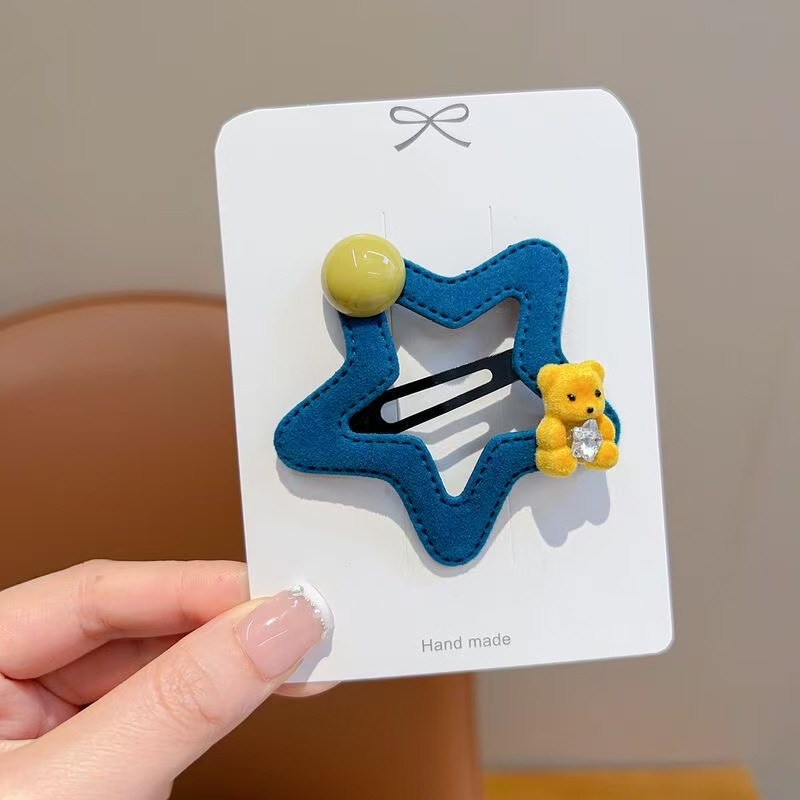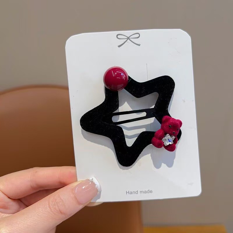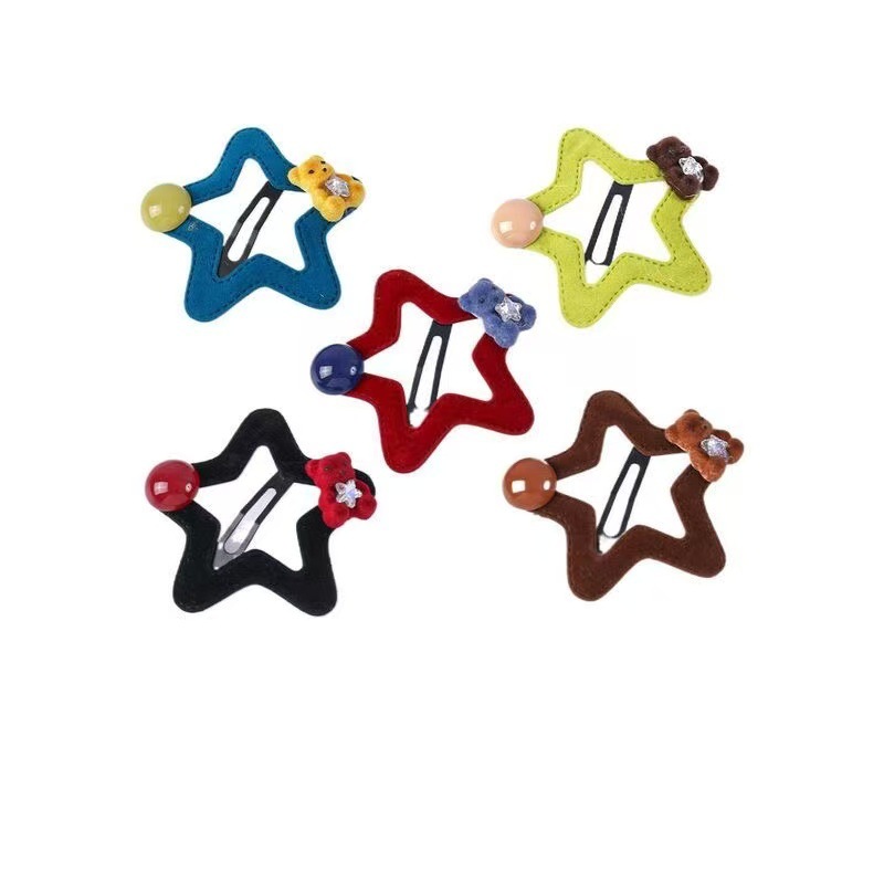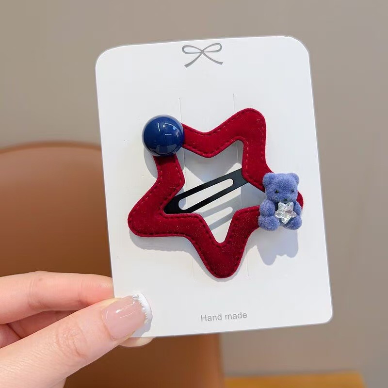 星星小熊碎发夹女童可爱五角星边夹秋冬新款毛绒发卡发饰头饰