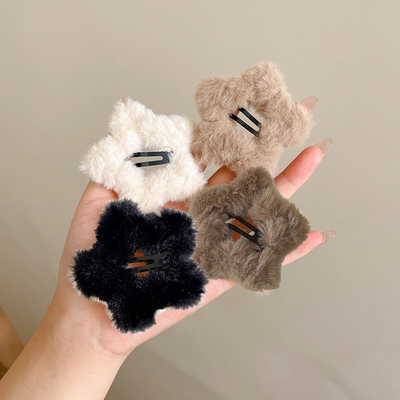 秋冬の毛の五角星のヘアピンの女性のシンプルな米のカレーの星のbbは透かし彫りの少女の辺を挟んでかわいい髪のヘアピンを挟みます。