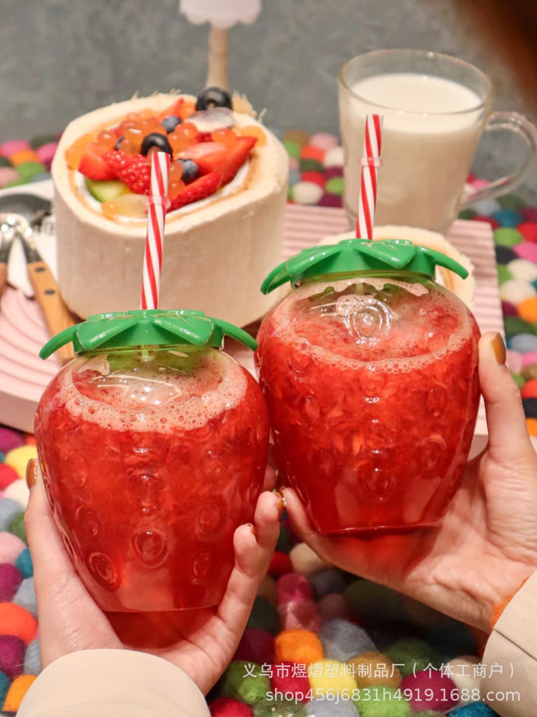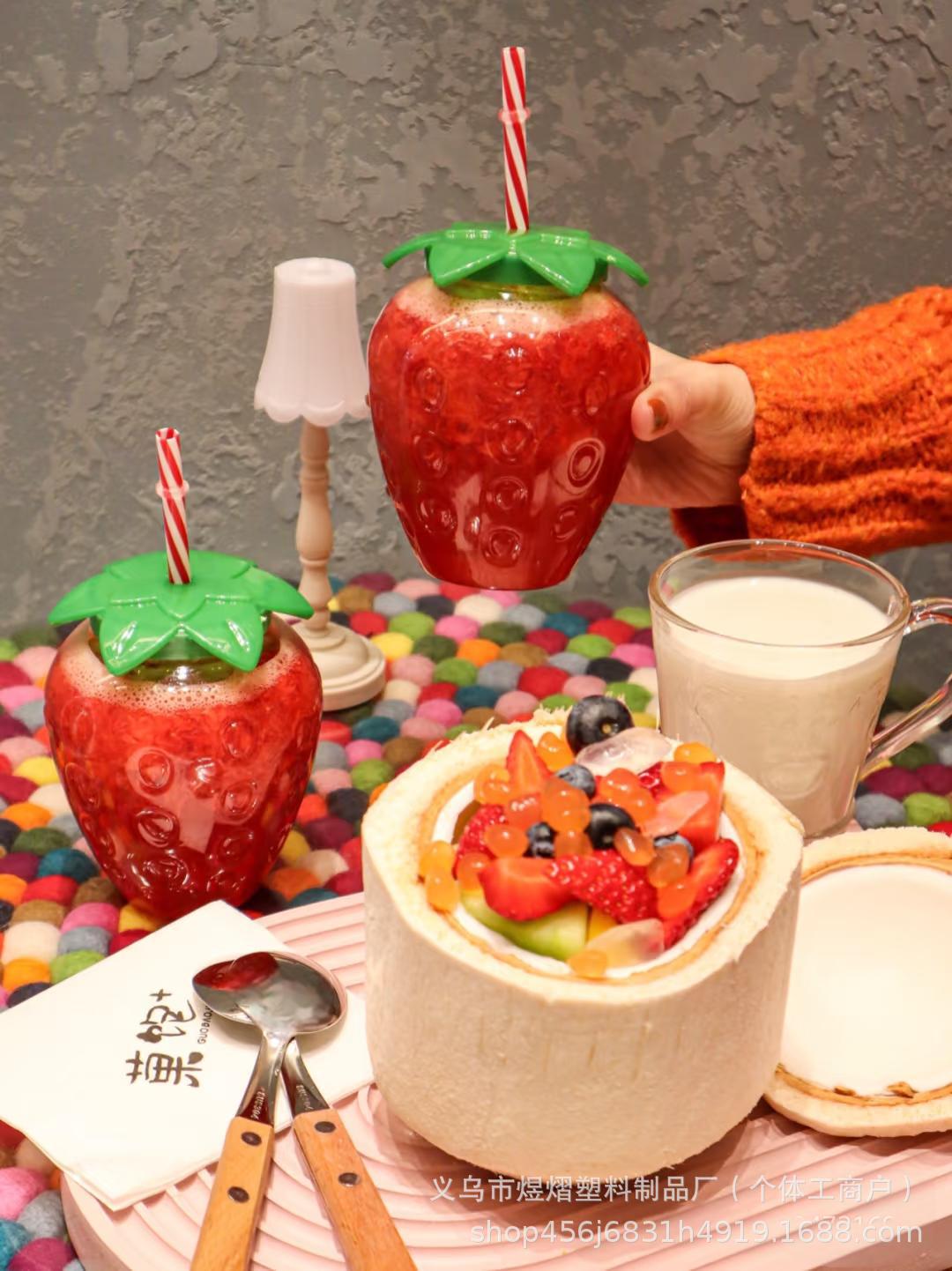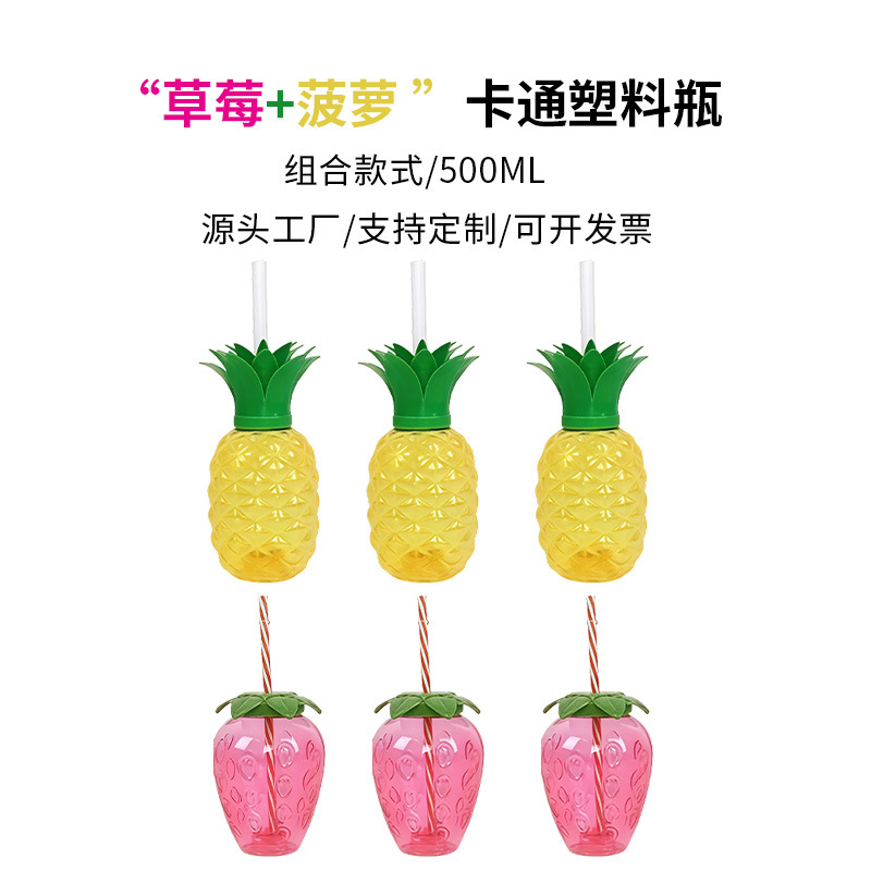 厂家直销网红爆款PET500ML草莓杯ins风卡通菠萝杯创意吸管水果杯