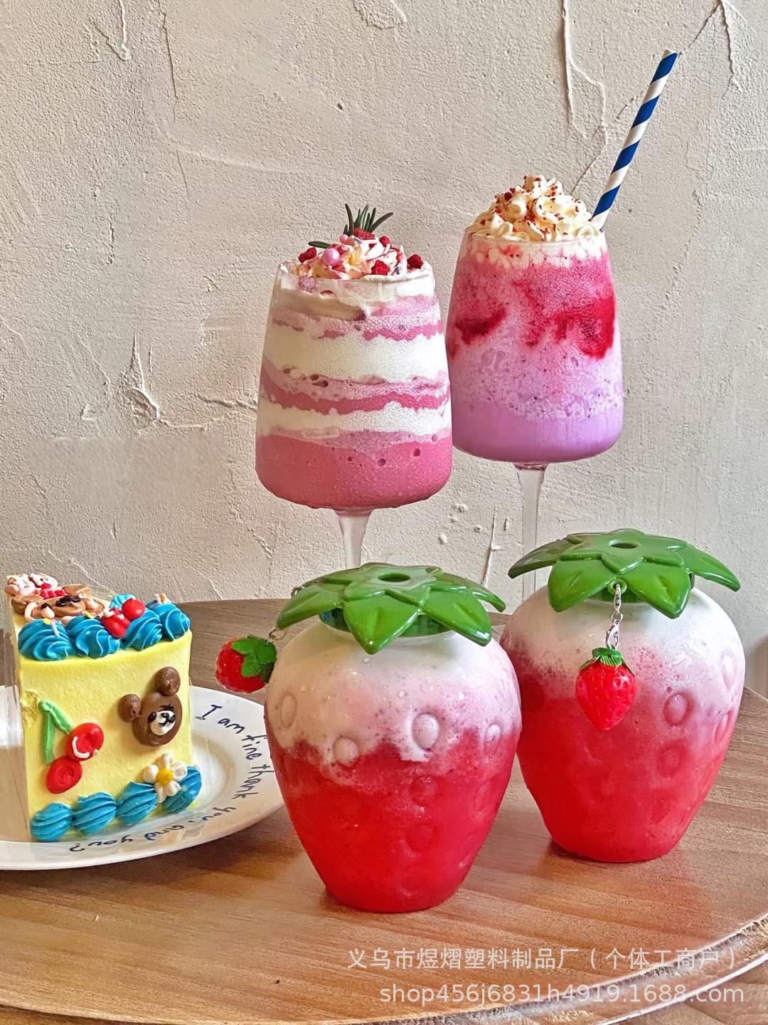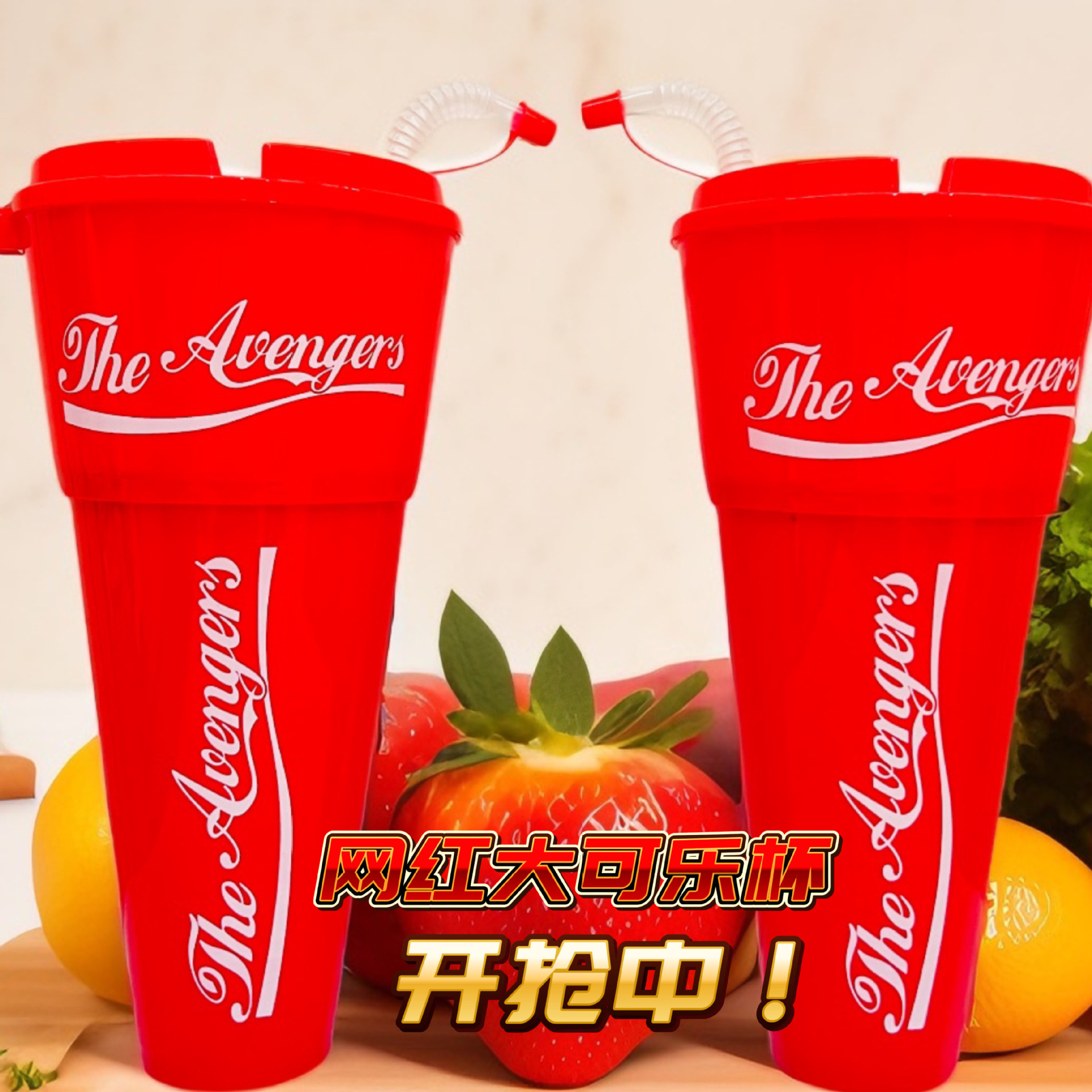 ins风可爱透明高颜值吸管杯一次性水杯塑料杯跨境草莓杯杯子批发