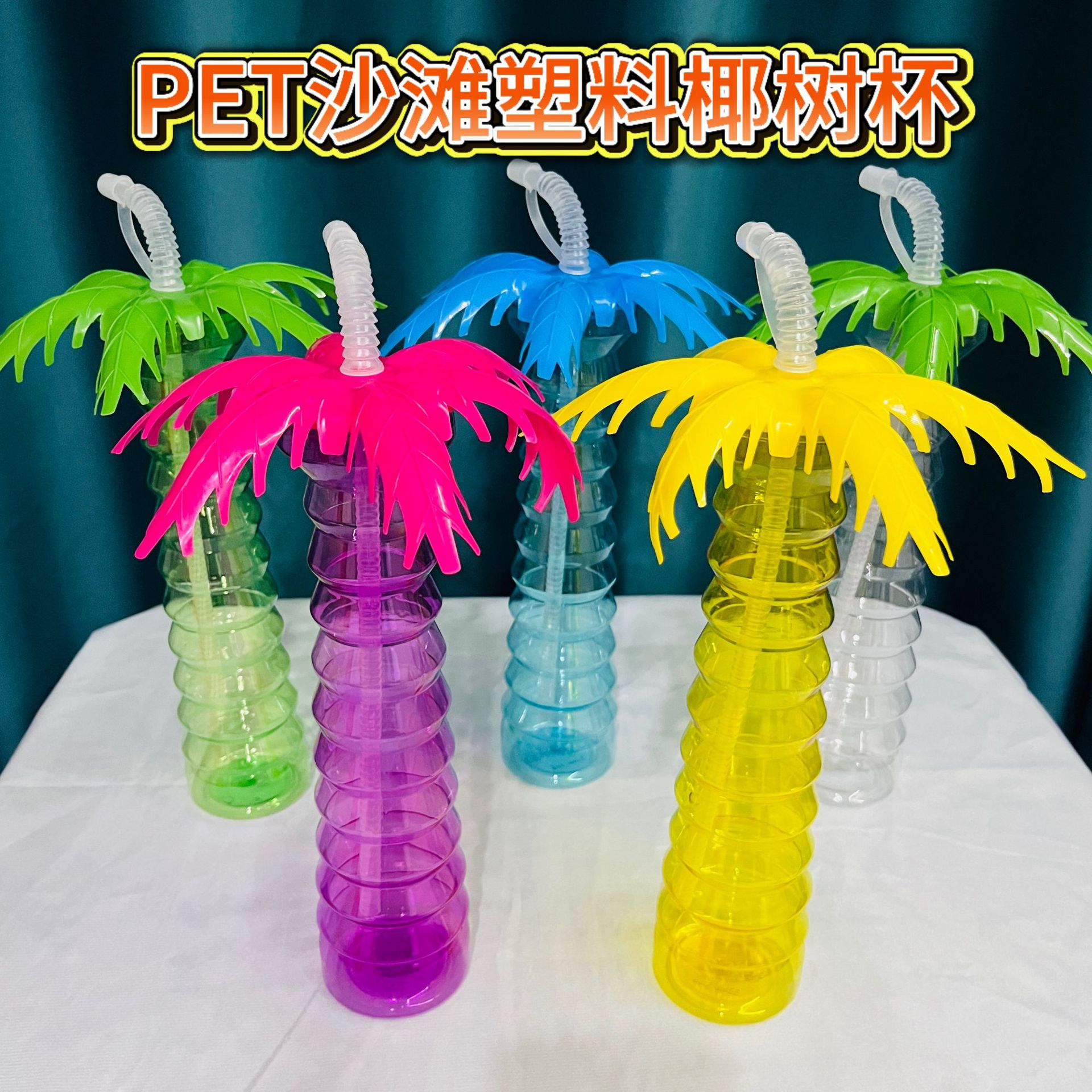 使い捨てPETビーチココナッツツリーカップ ジュースミルクティー冷飲料ボトル型異形500MLストロー付き冷飲料カップウォーターカップ