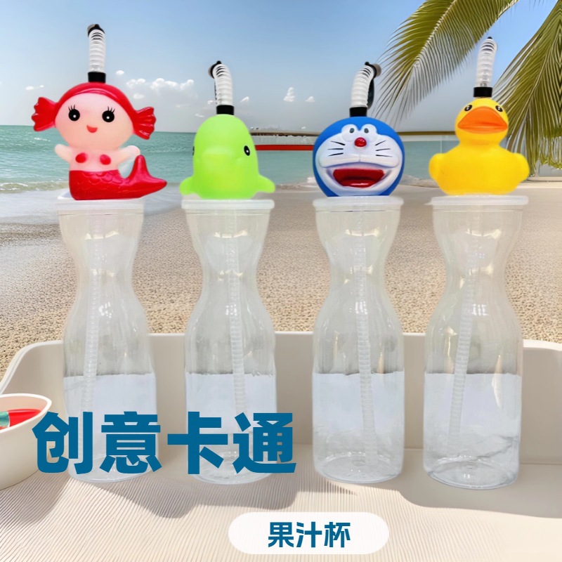 漫画動物プラスチックカップジュースミルクティー飲料ボトル景勝地フィギュアストローカップ子供用クリエイティブ同型ウォーターカップ