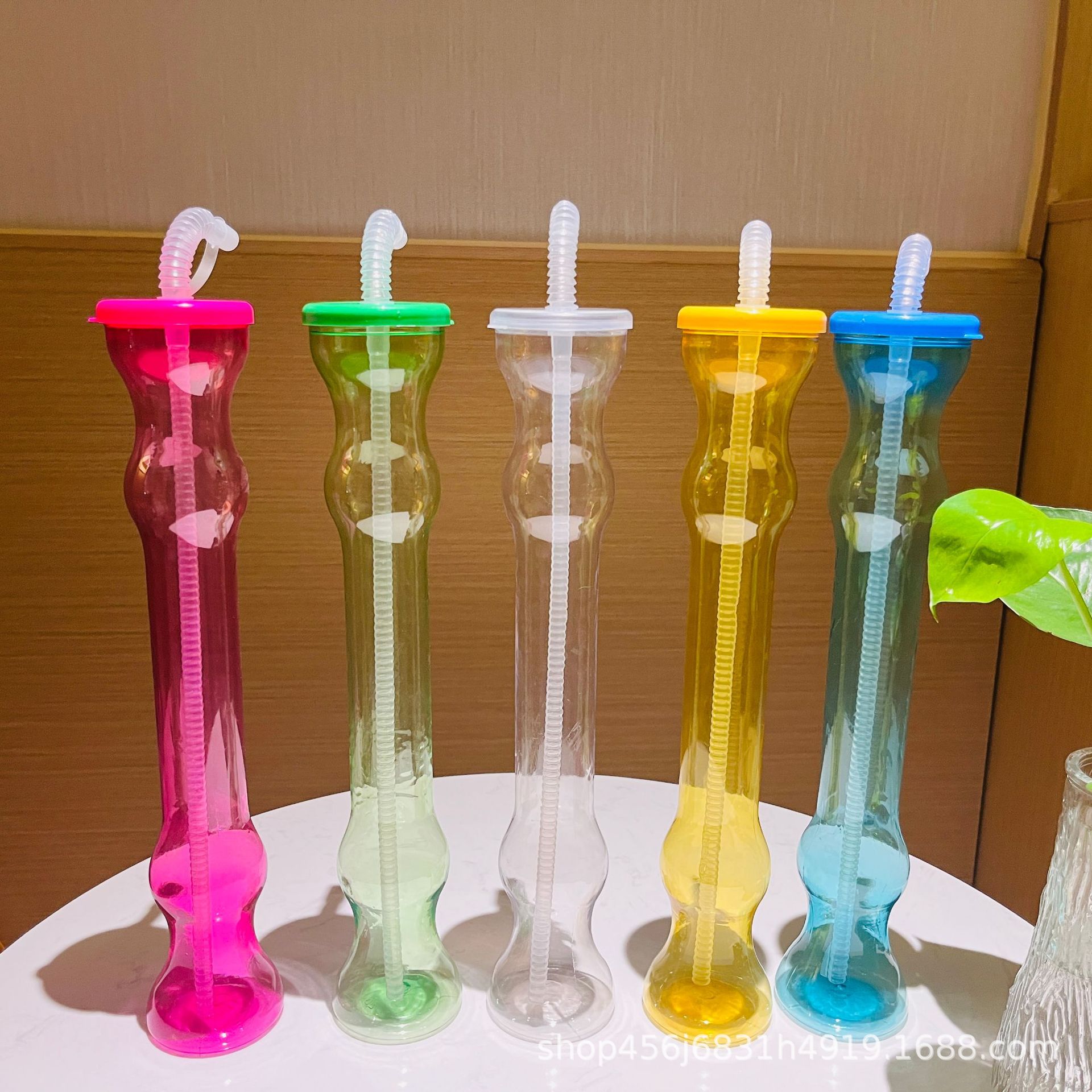 カラフルなプラスチック製ストローカップ カクテル スムージー ジュースカップ 特殊形状 庭でのパーティー用 冷たい飲み物カップ 環境に優しい
