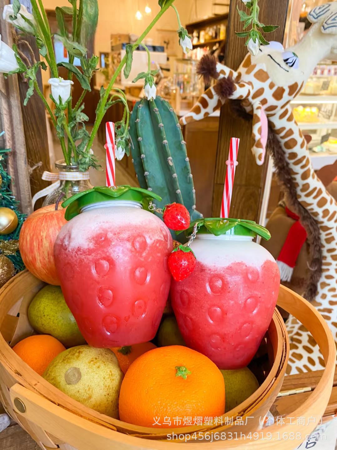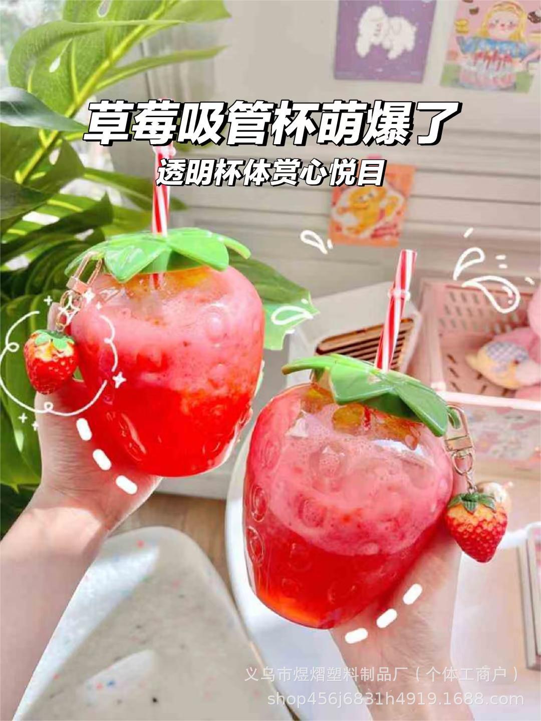 夏のネット赤いちごストローカッププラスチックカップかわいい女性がミルクティーカップを持っている学生はコップの水筒を携帯している