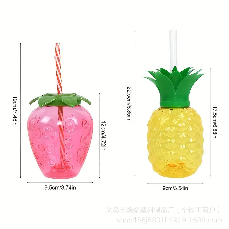 厂家批发创意菠萝草莓杯组合装塑料吸管杯奶茶果汁冷饮杯夏日水杯