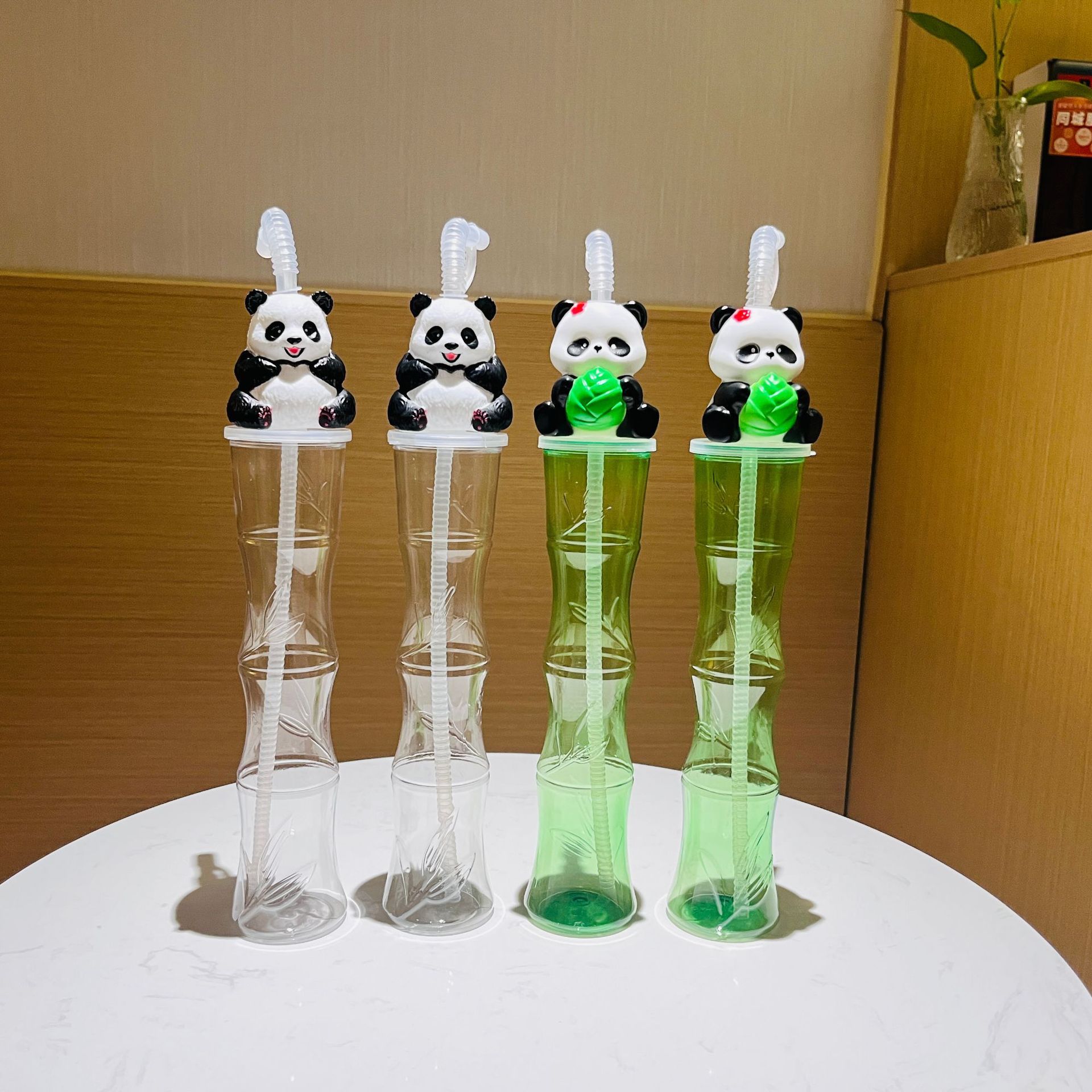 国境を越えた簡単なタイプのダンベルひょうたんたいまつパンダの造形カップミルクティー飲料使い捨て麻花プラスチックストローカップ