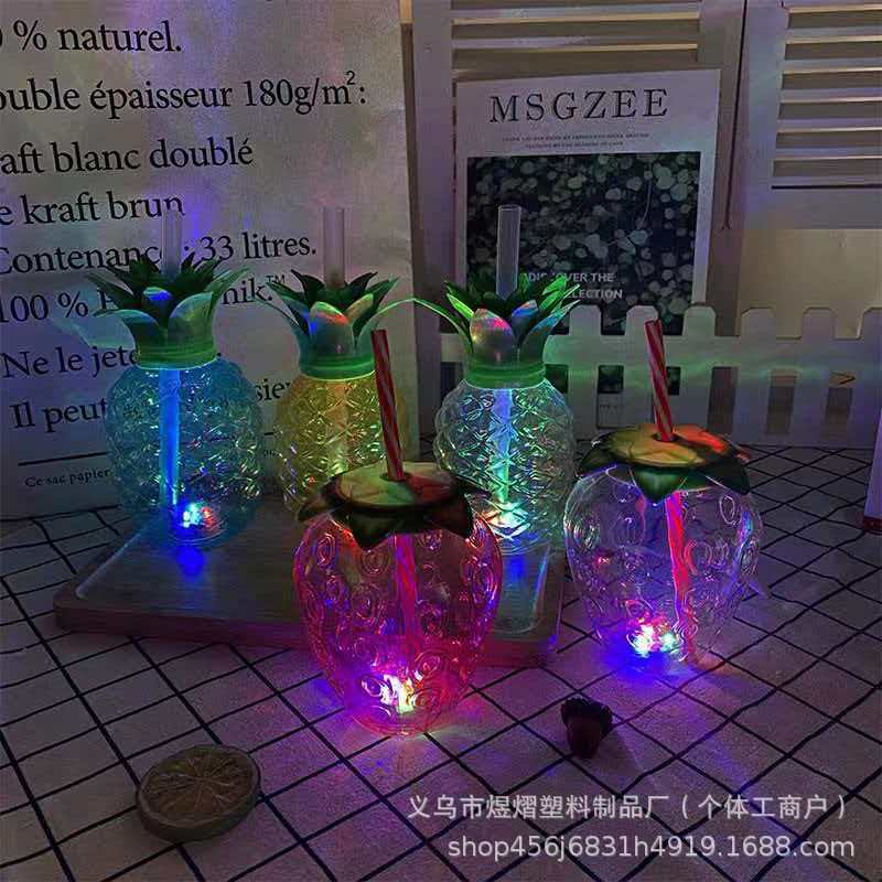 工場直販インターネットセレブクリエイティブPET500MLストロベリーカップ発光プラスチックパイナップルジュースカップストロベリーストローカップ