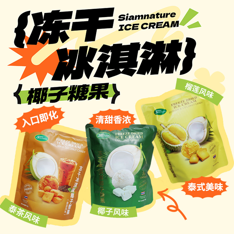 タイの輸入冷凍乾燥アイスクリームココナッツ泰茶ドリアン味キャンディー濃厚で美味しい健康スナック