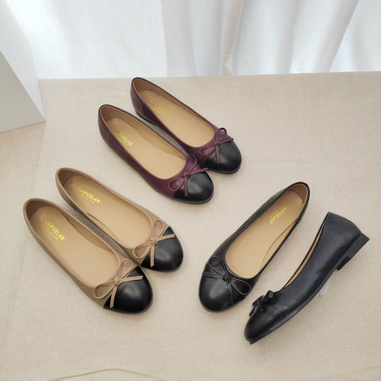 フレンチスタイルの新しいラウンドトゥレディースシューズ、レトロなカラーマッチングデザイン、フラットバレエシューズ、エレガントなレディースシューズ