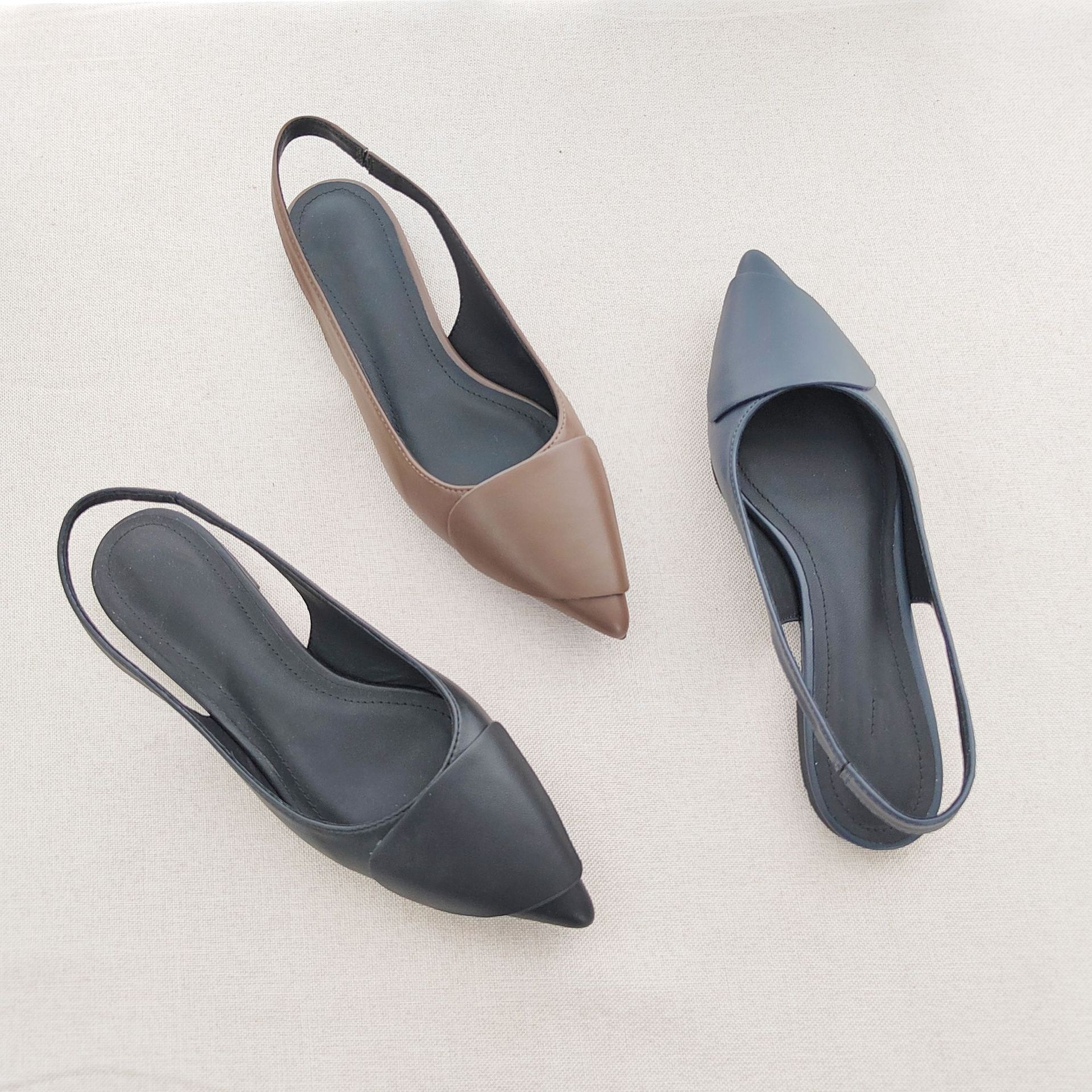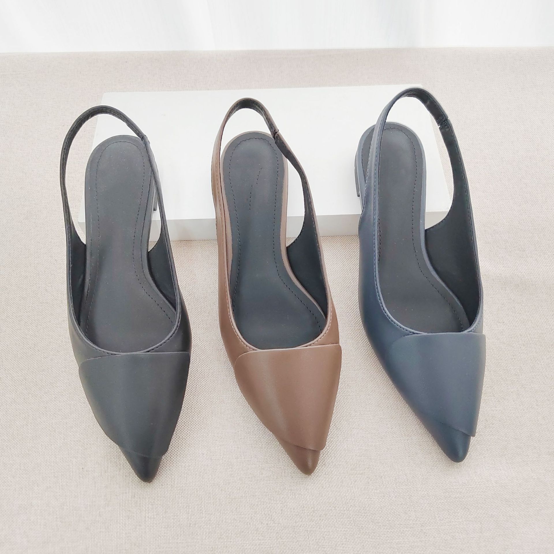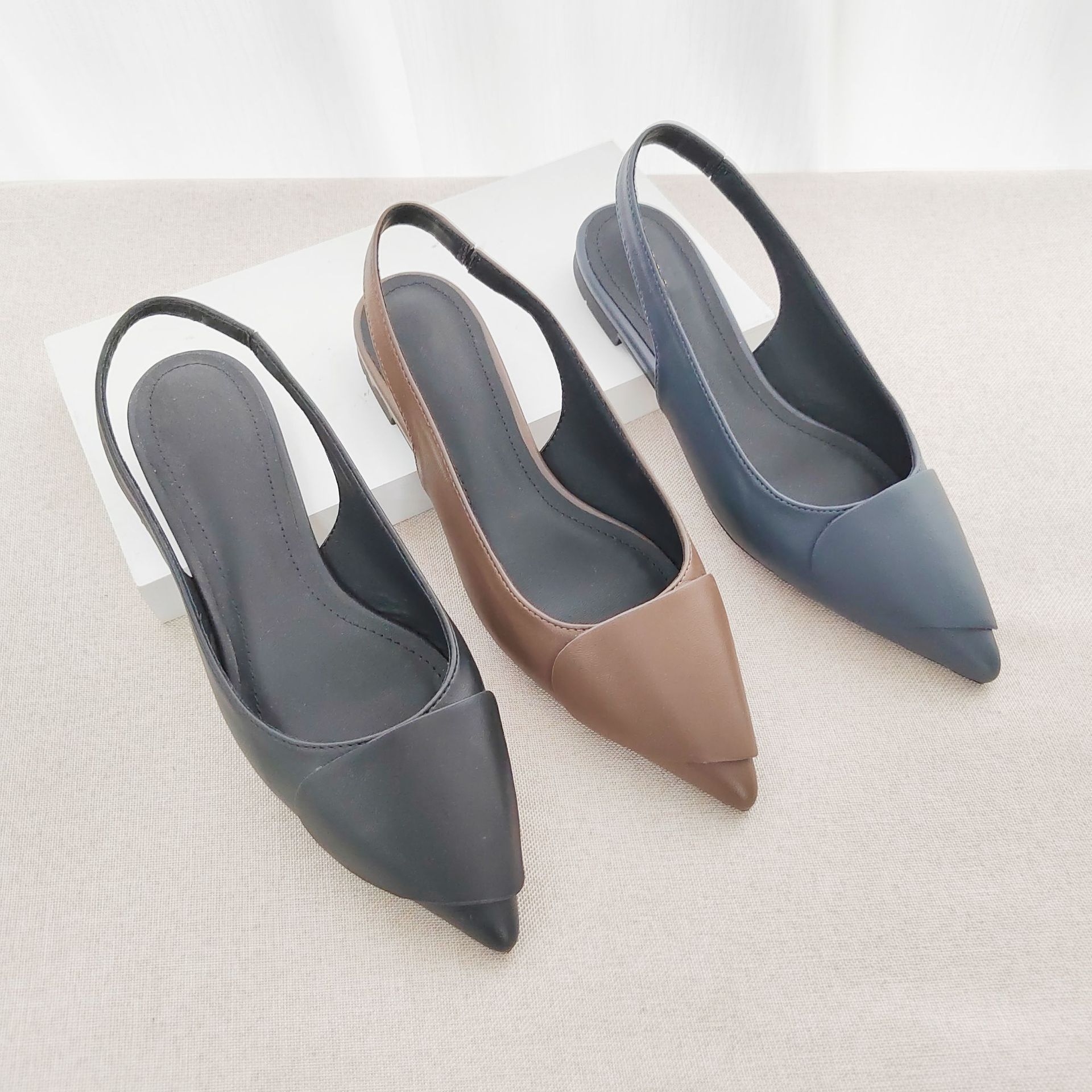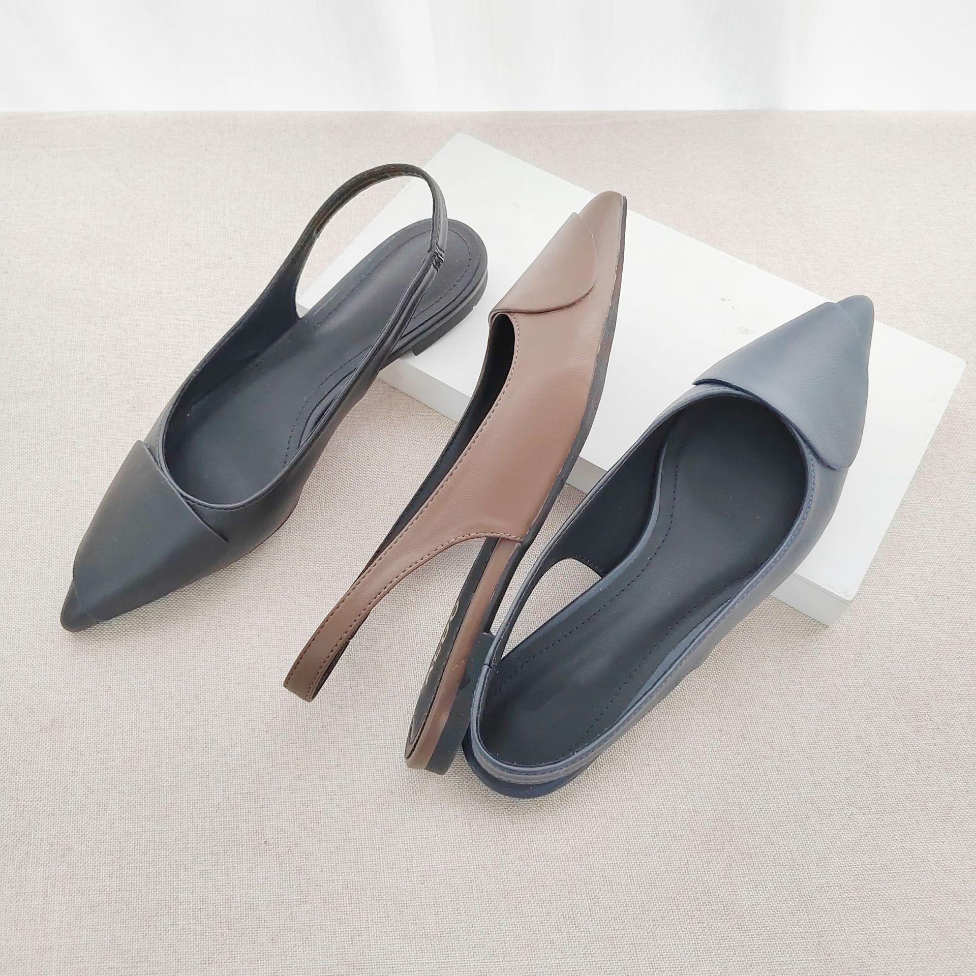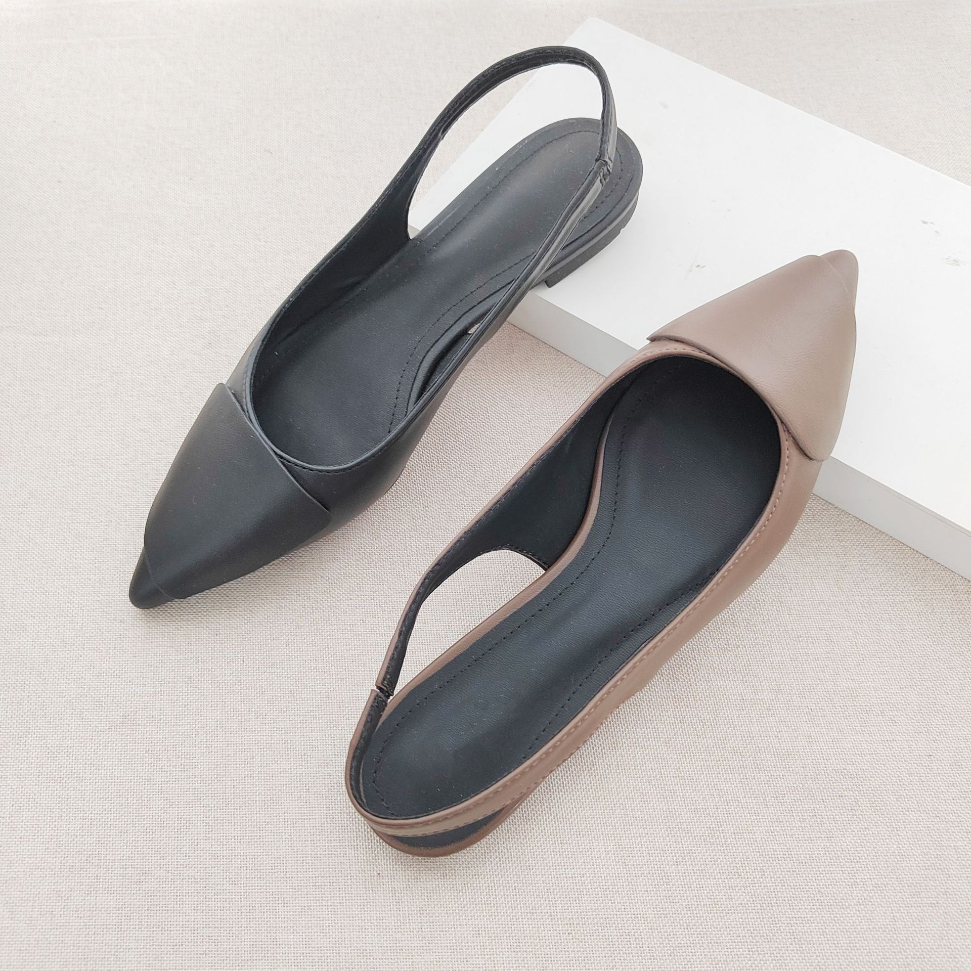 夏の外貿向けレディースシューズ、新作夏用ポインテッドトゥ、万能で優しいスタイル、フラットシューズ、フレンチスタイル、つま先が覆われたヒールストラップサンダル