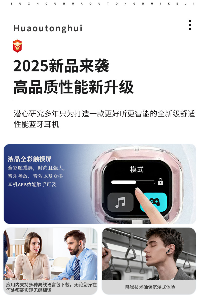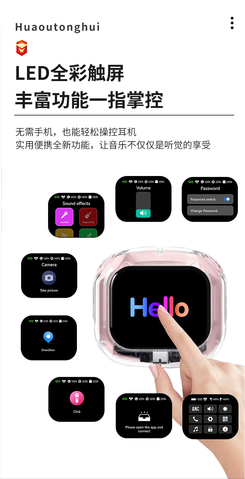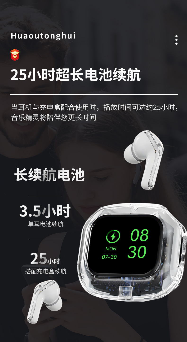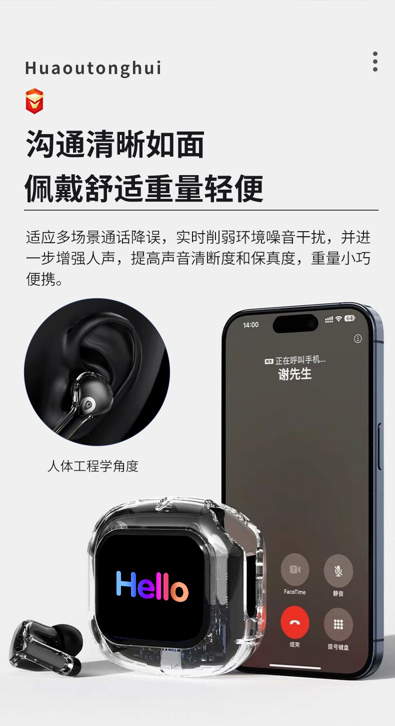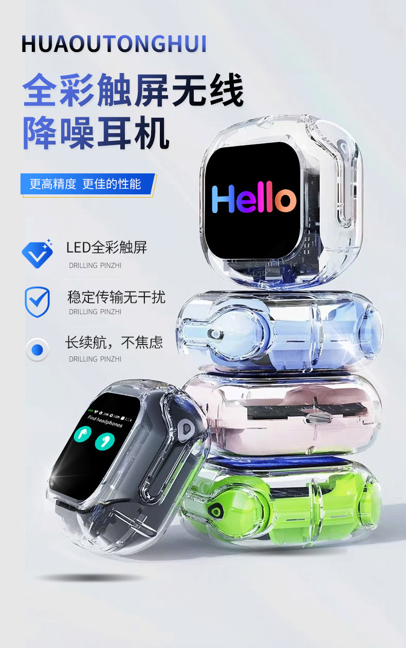 2025跨境新AIRMAX带屏实时显示AI翻译智能蓝牙耳机查找耳机消息