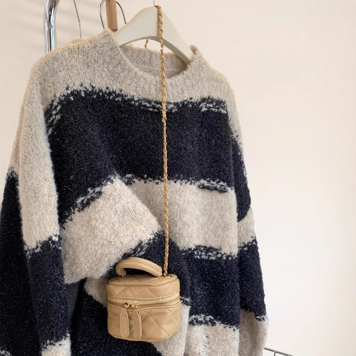 哥家商场同款女装2025秋季韩版套头条纹毛衣加厚外穿宽松慵懒高级