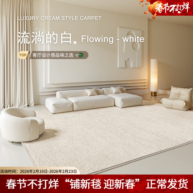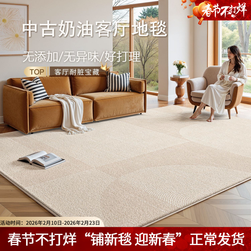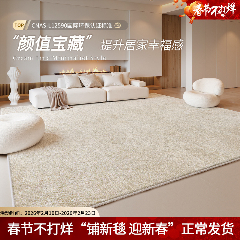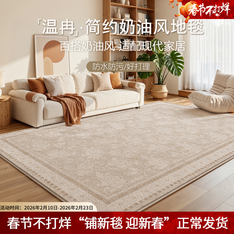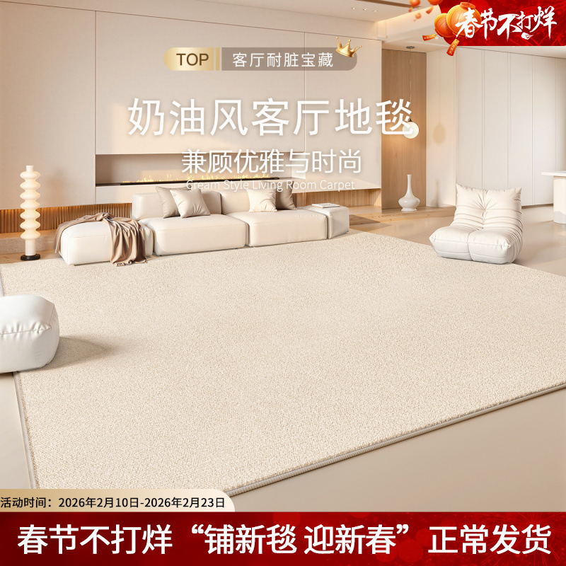 客厅地毯奶油风简约轻奢免打理沙发地垫卧室高级感防水防污床边毯