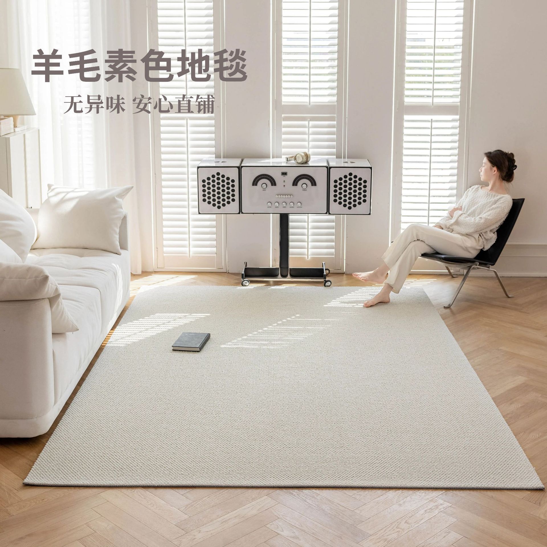 羊毛地毯客厅纯色新款奶油风素色抑菌沙发茶几毯高级卧室床边毯