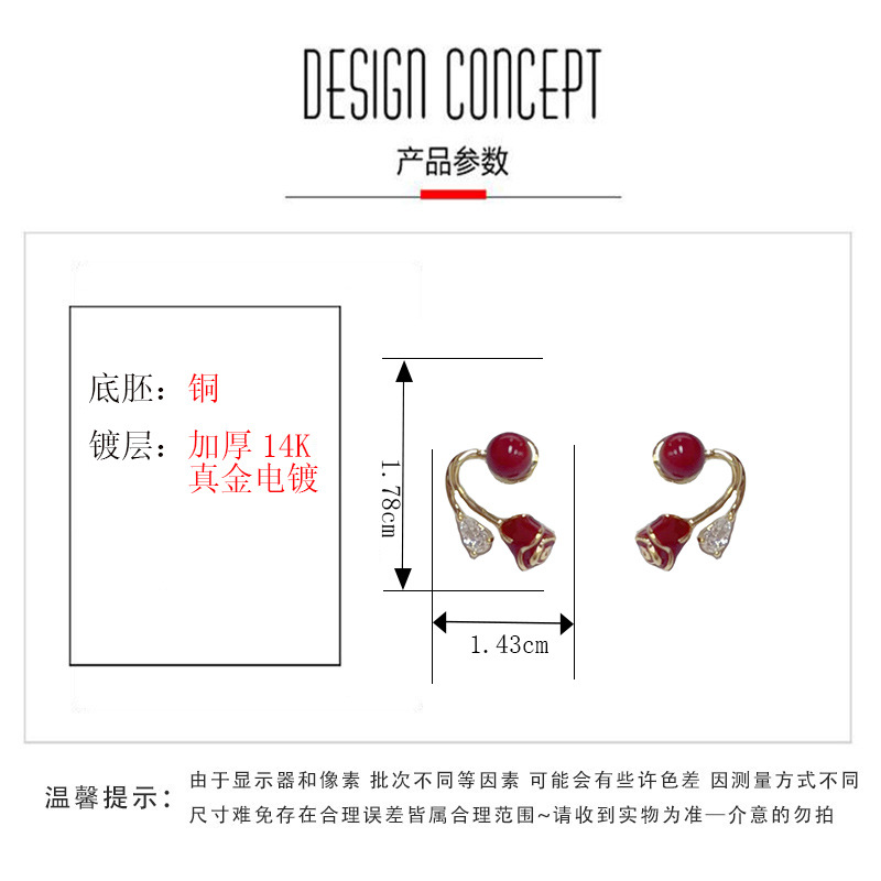 颜色 红色两戴玫瑰花耳钉(加厚真金电镀)
