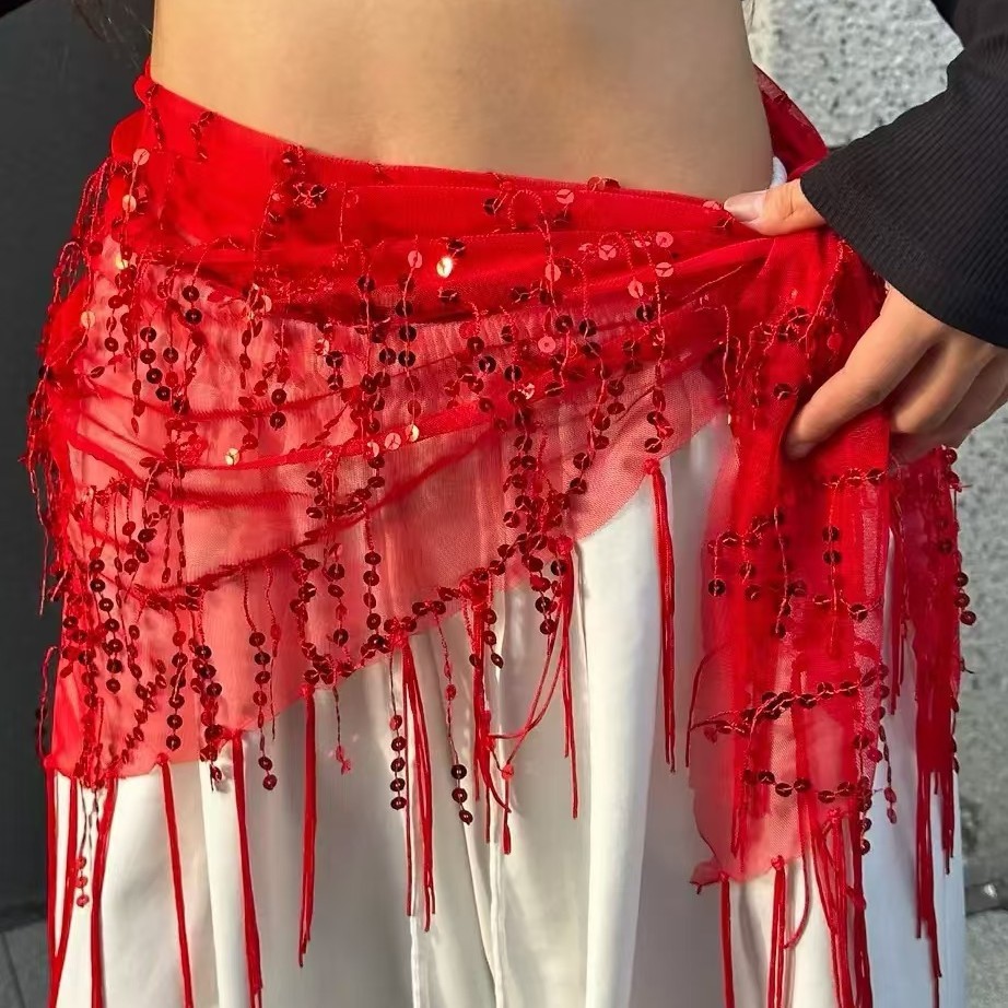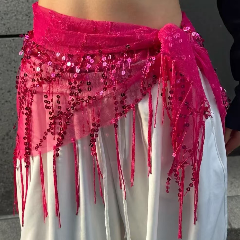 新款网红爵士舞臀巾街舞腰链臀巾配饰亮片三角巾流苏腰带腰巾百搭