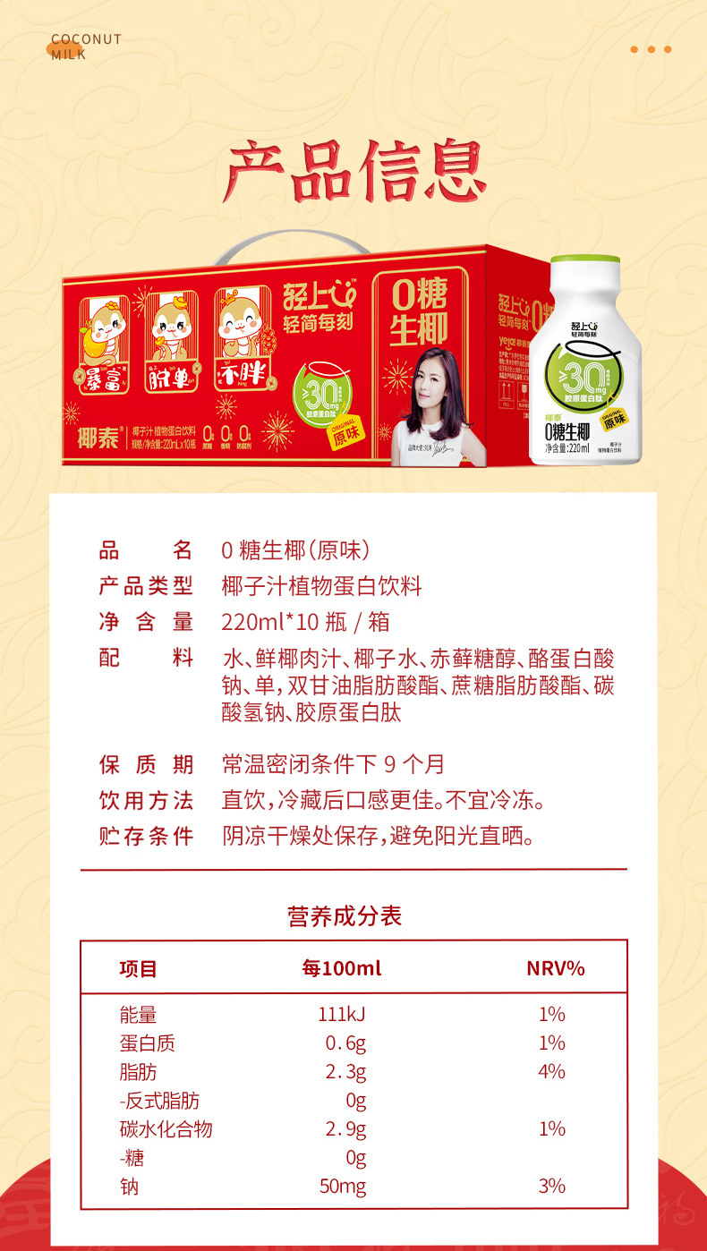 包装规格 0糖生椰220ML*10瓶(原味),(喜庆版)0糖生椰220ML*10瓶(原味)