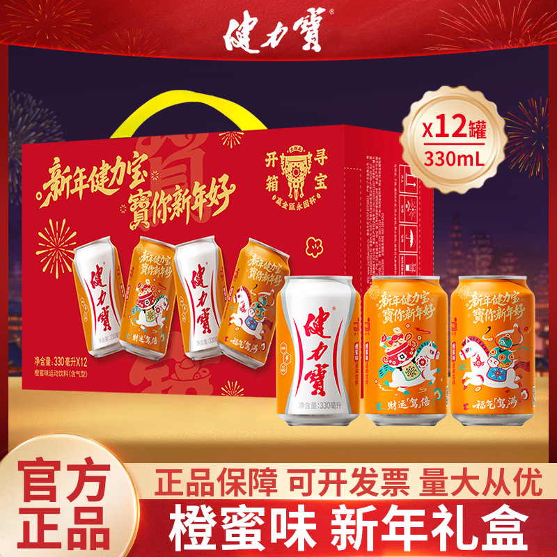 【马年限定礼盒】健力宝橙蜜味330mL*12罐装果味碳酸饮料新年送礼