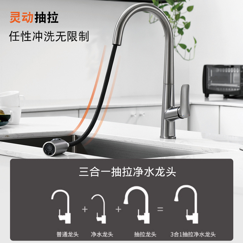 三合一浄水器は直接水を飲みます。灰色の野菜を洗います。