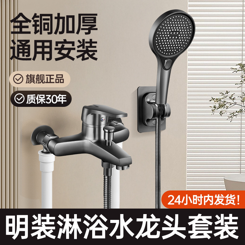 精铜三联淋浴龙头花洒套装冷热两用混水阀热水器浴室浴缸淋浴整套