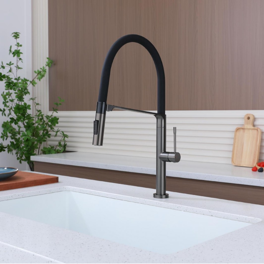 アメリカの全銅黒色家庭用引き出し式キッチン蛇口単穴洗濯池水槽洗濯盆冷熱蛇口