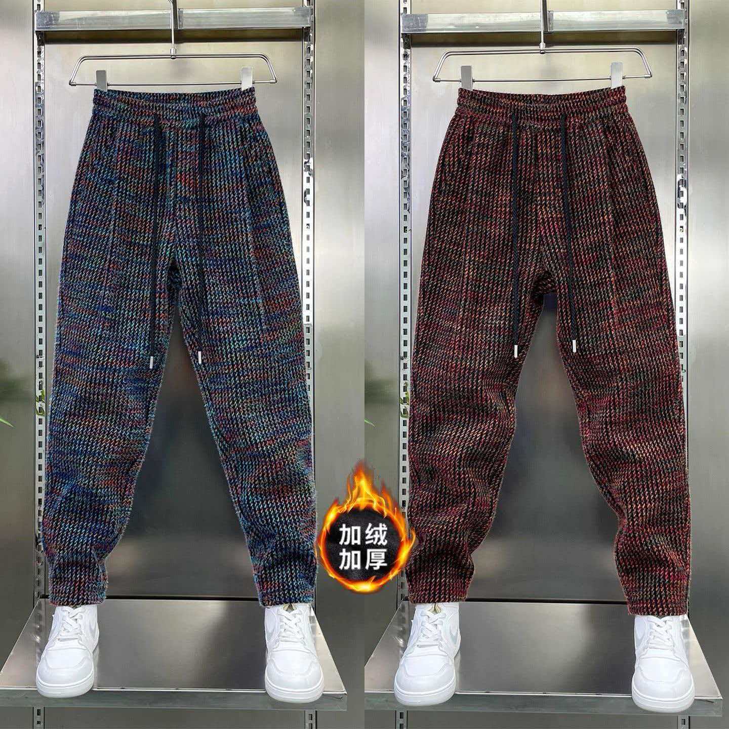 针织加绒款加厚款提花重磅面料免熨抗皱保暖防寒潮流休闲男裤