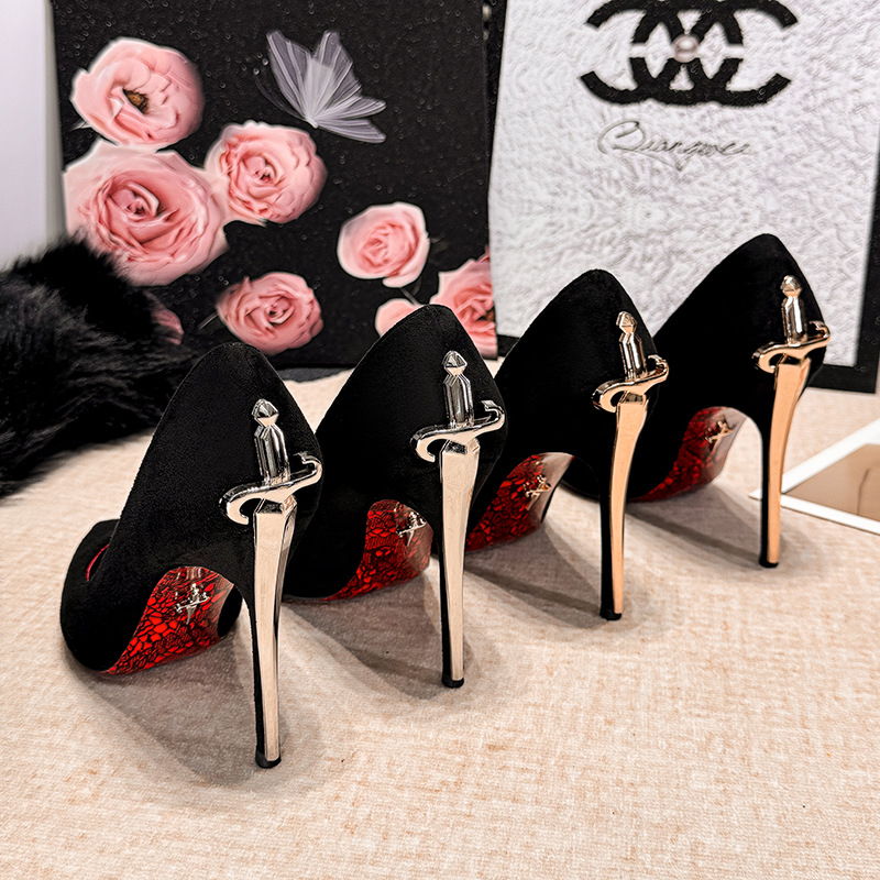 2026欧美新款尖头利剑高跟鞋女超高跟匕首CP时髦百搭细跟红底单鞋