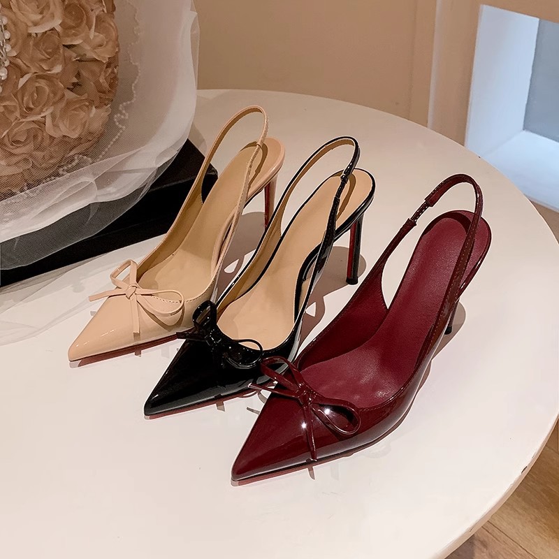 包頭サンダル2025春夏新作蝶結びの赤い底の後の空のハイヒールのアンドロメダの百合の浅い口の細い靴と女性靴